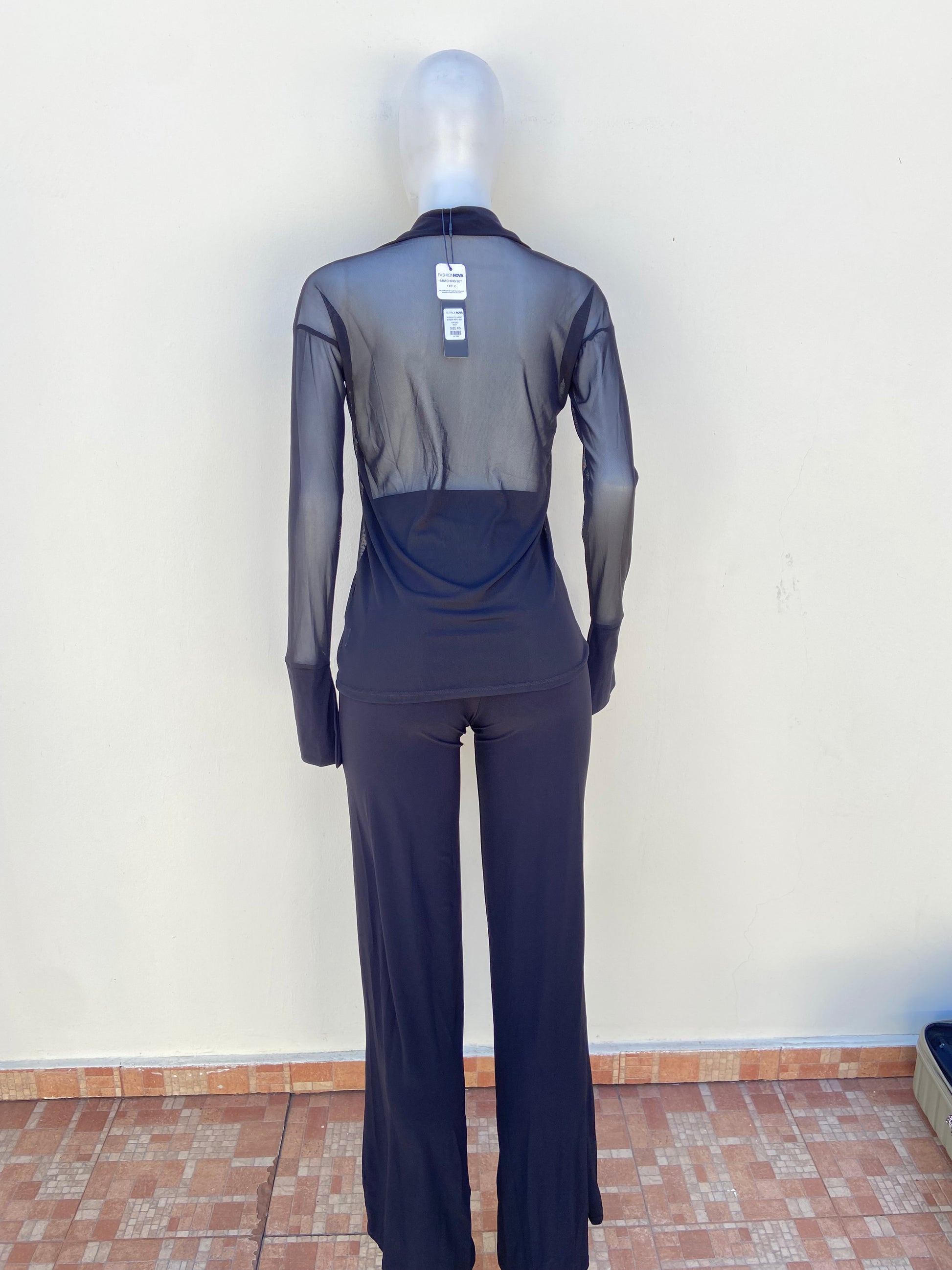 Conjunto, negr de camisa y pantalon transparente, manga larga.
