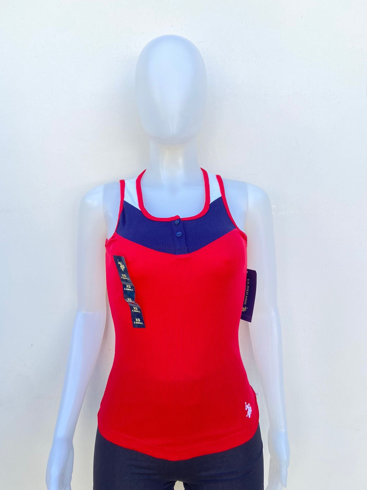 Franela U.S Polo original rojo con blanco y azul marino.