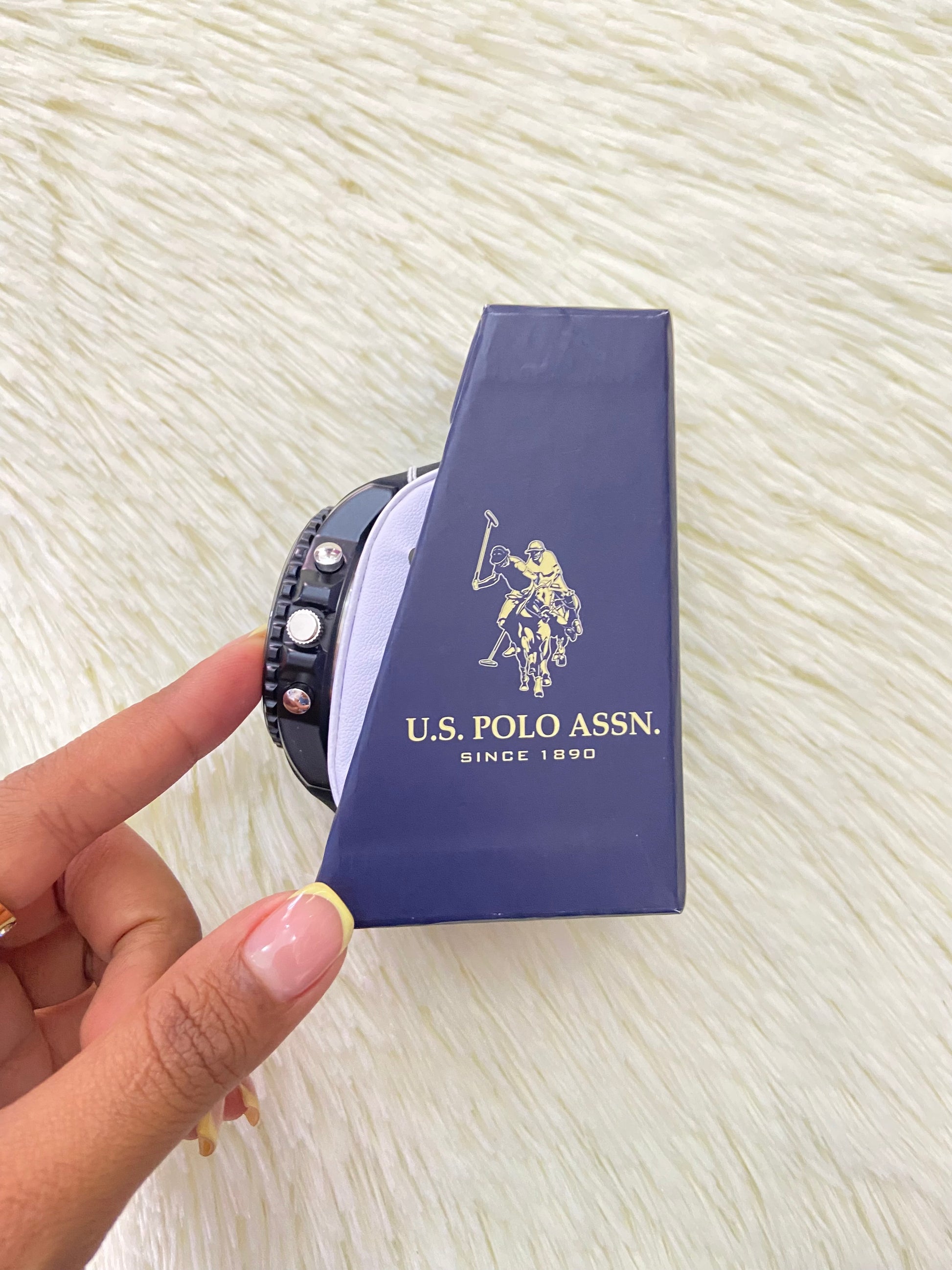 Reloj U.S POLO ASSN. SINDE 1890 original negro con detalles en color plateado.