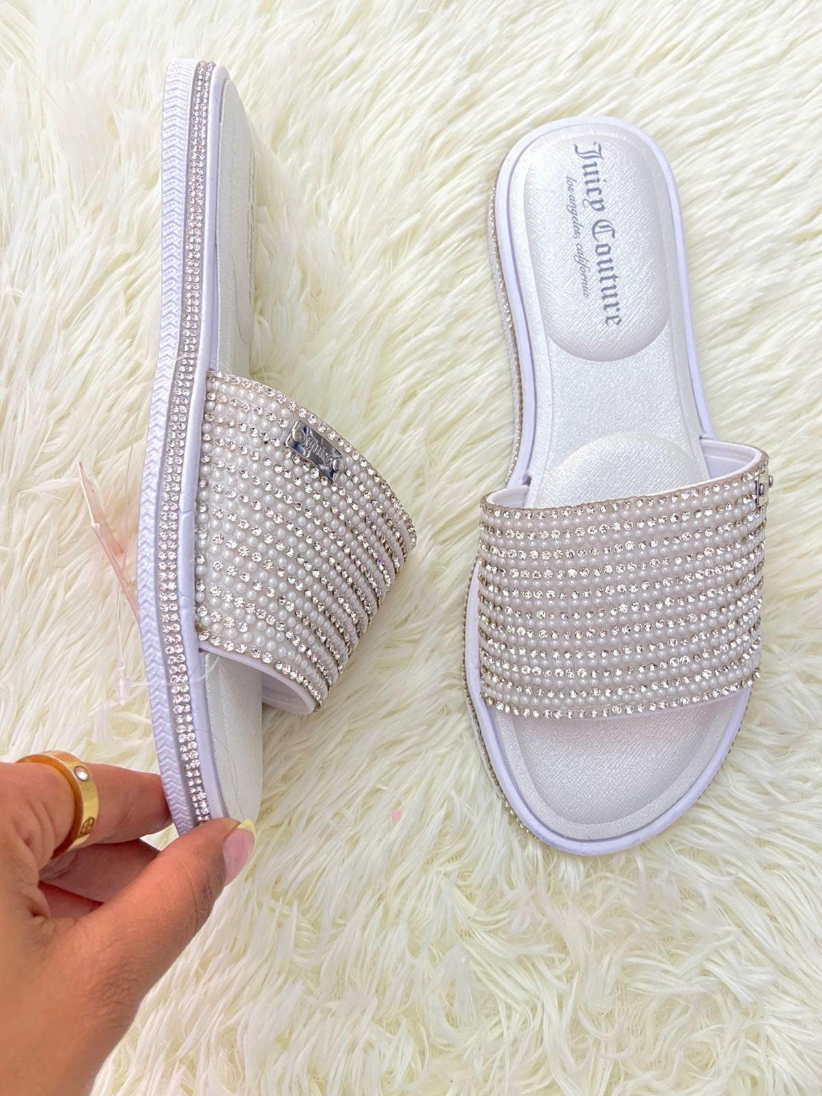 Sandalias JUICY COUTURE original, plateada con brillos en frente.