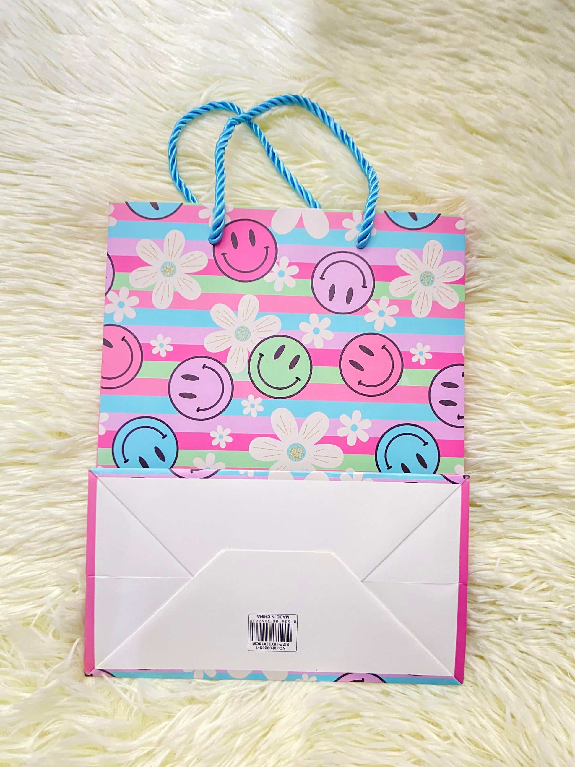 Shopping, rosado con estampado de caras felices, PEQUEÑO.