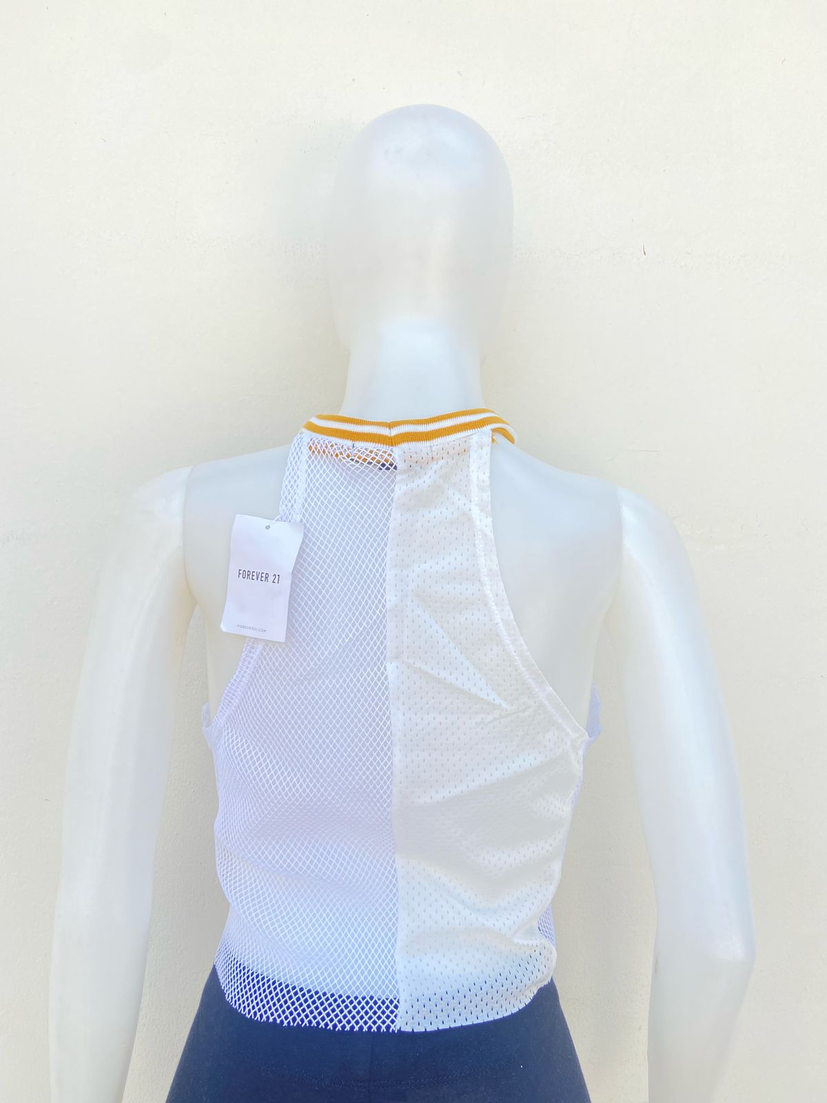 Top FOREVER 21 Original blanca con estampado del logo de BOSTON MASSACHUSETTS y numero 18