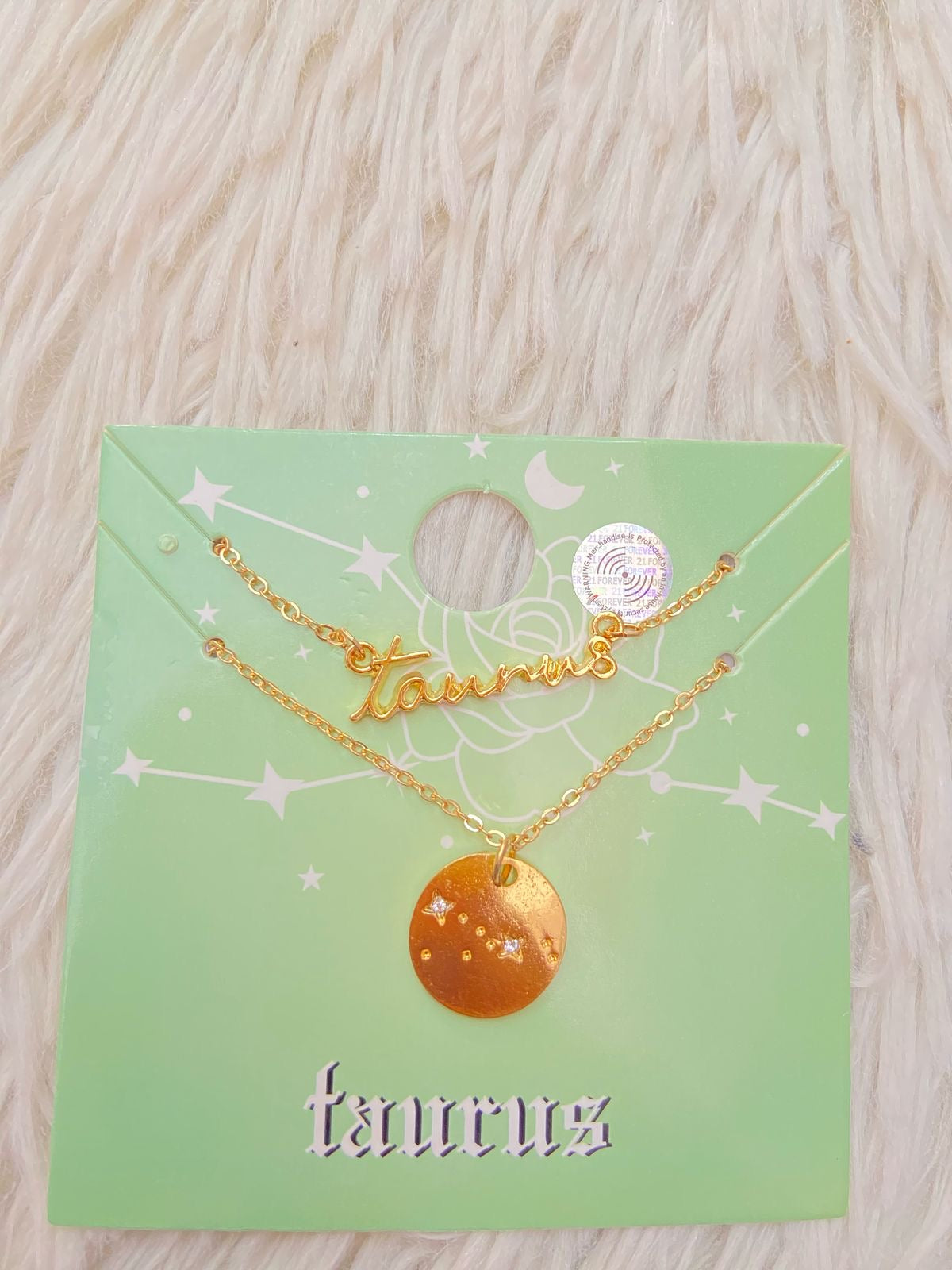 Cadena FOREVER 21 Original de dos piezas una con el nombre del signo TAURO y otra con una medella