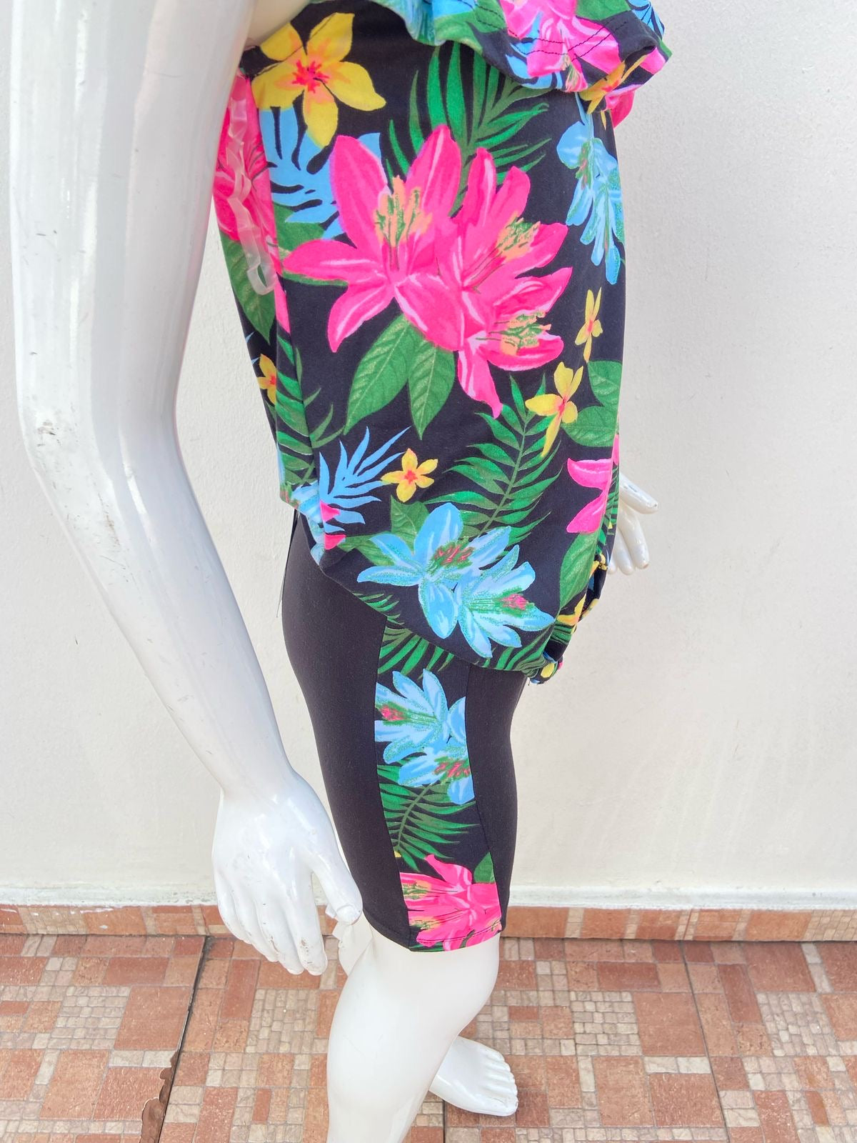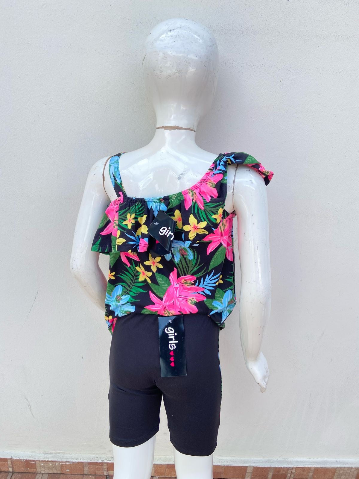 Conjunto Girls original, negro con rosado con estampado de rosas.