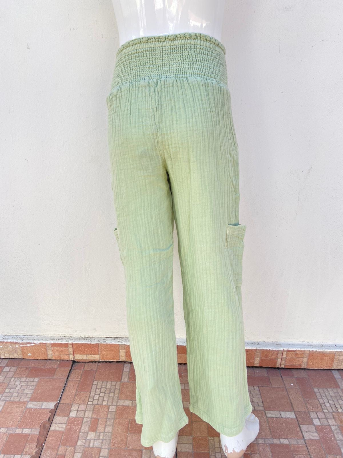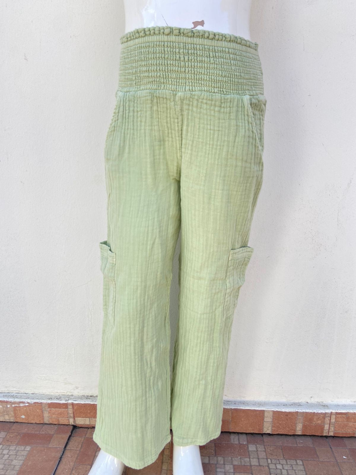 Pantalón/Palazzo Nova Kids, en color aliva claro con bolsillos al lado