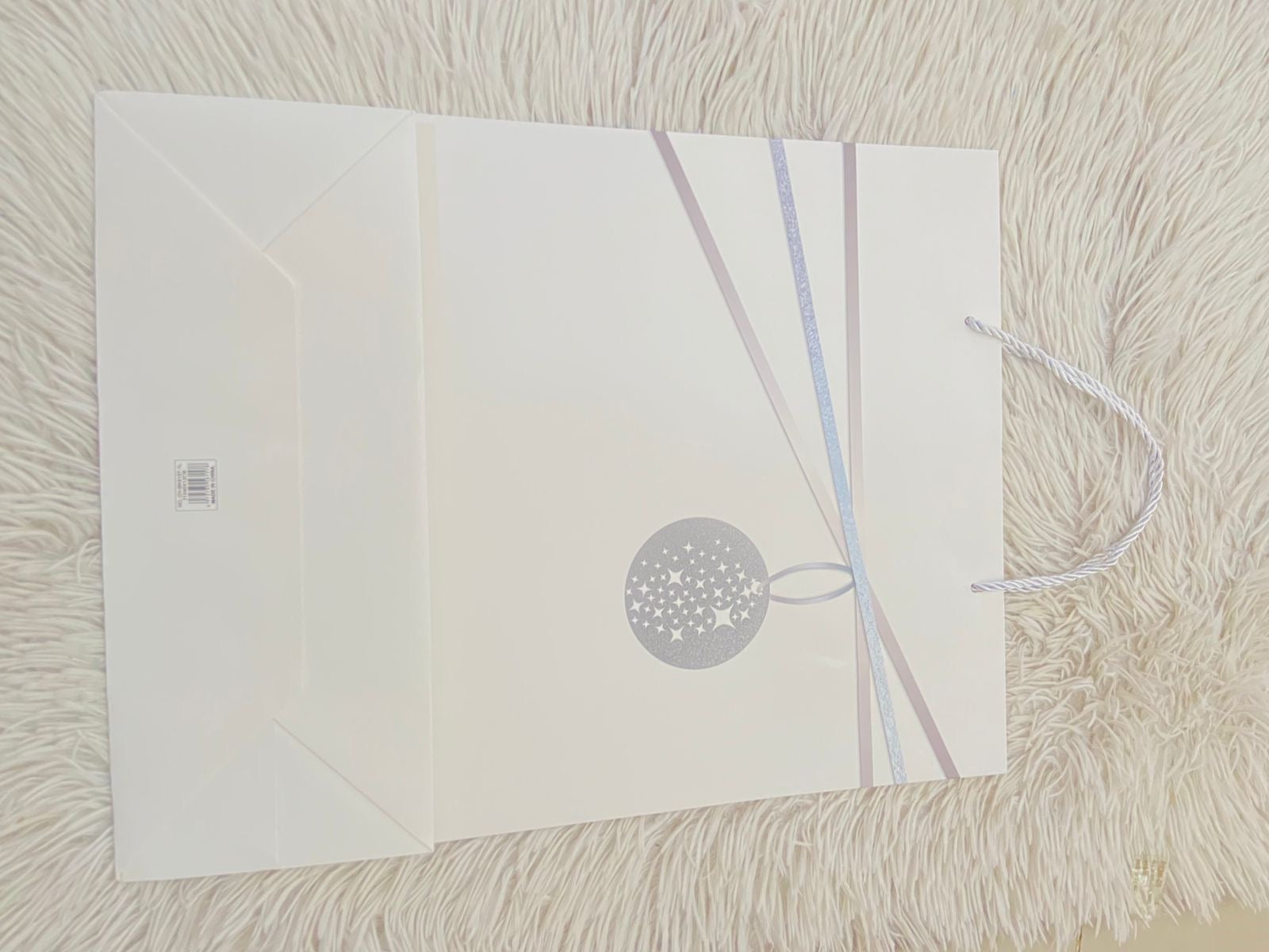 Shopping, blanco con lazos en color plateado, GRANDE.