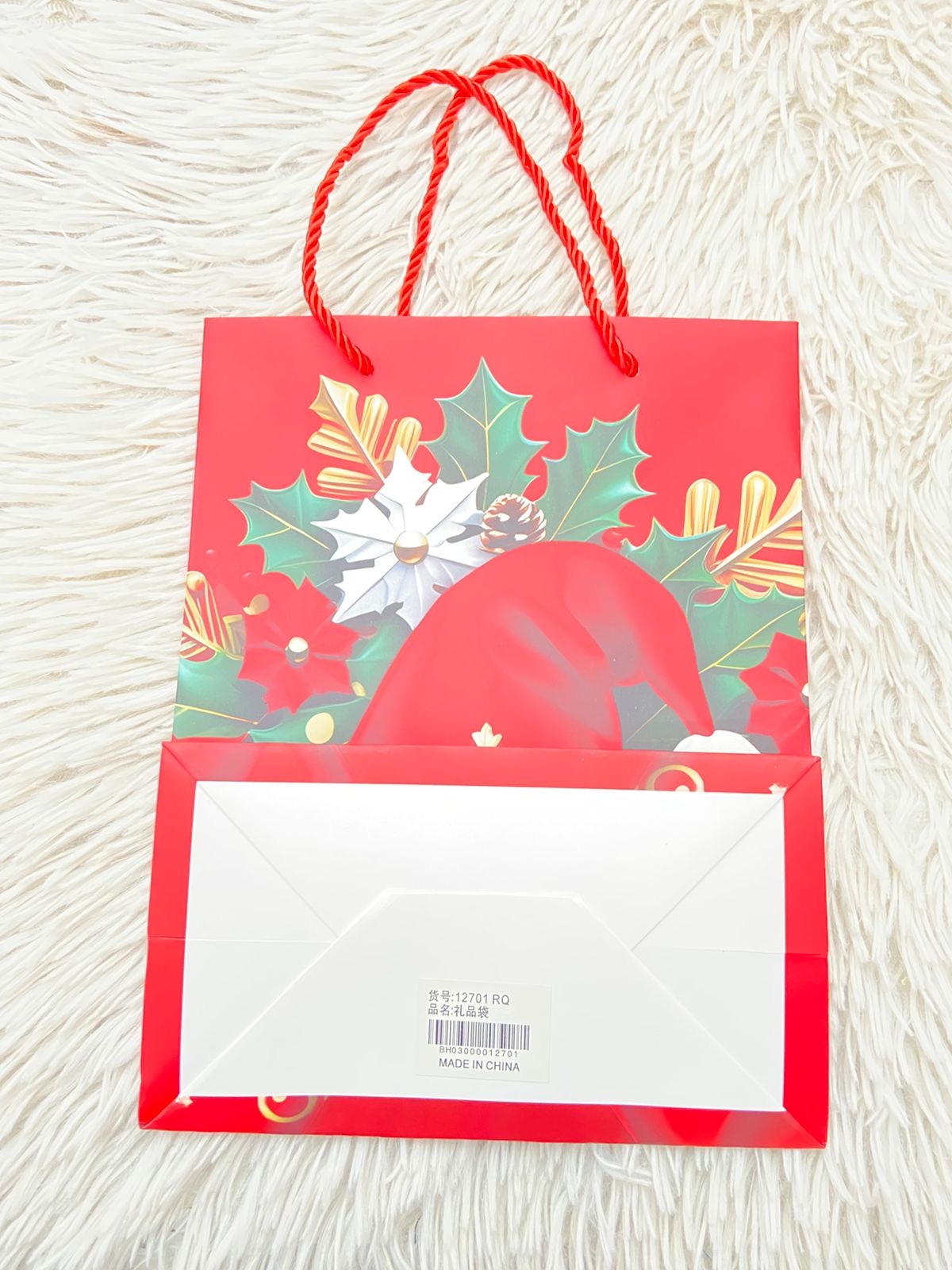 Shopping, rojo con estampado de gorro navideño, PEQUEÑO.