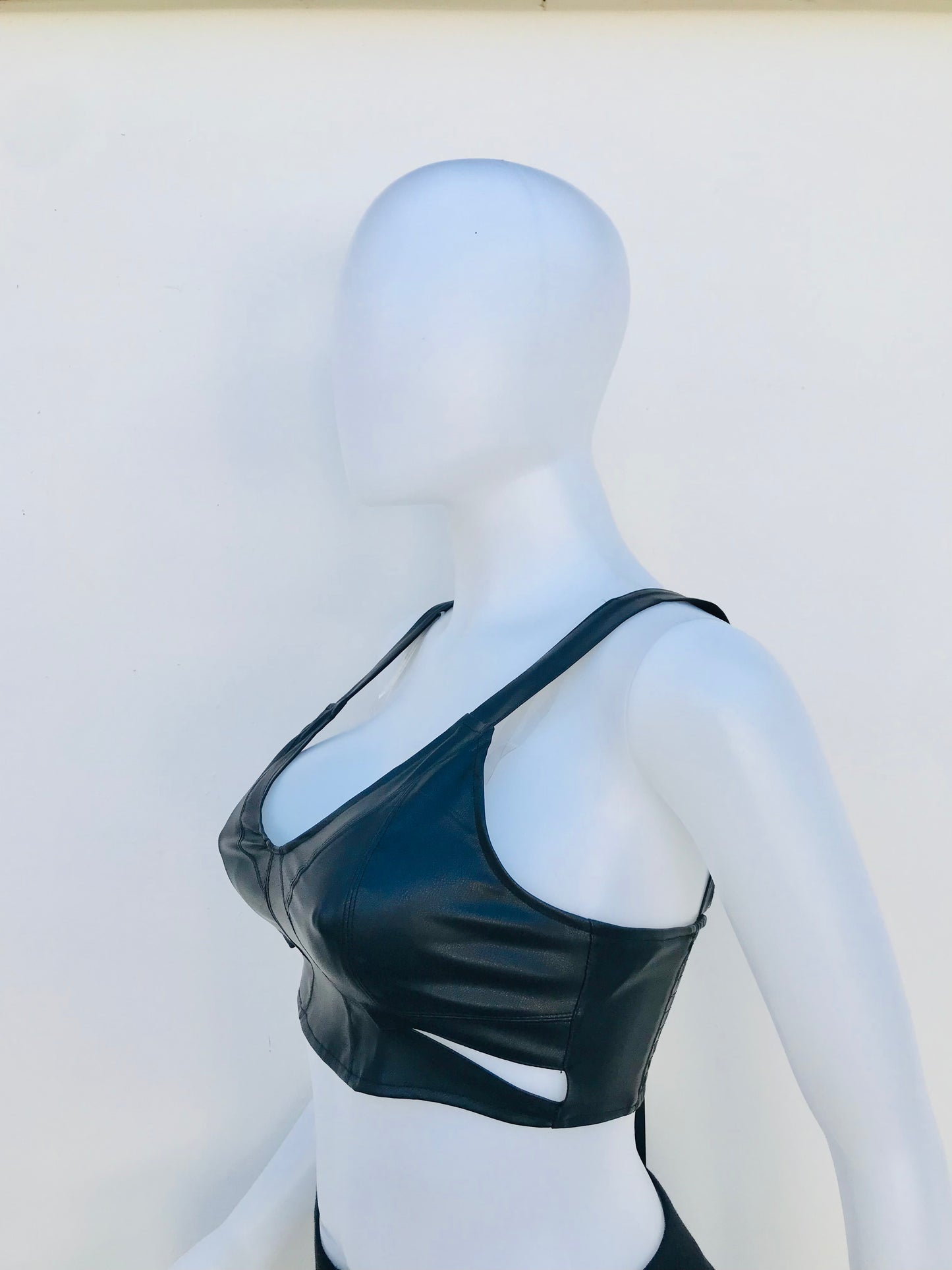 Top FASHION NOVA original, negro con descubierto en ambos lados en leather.