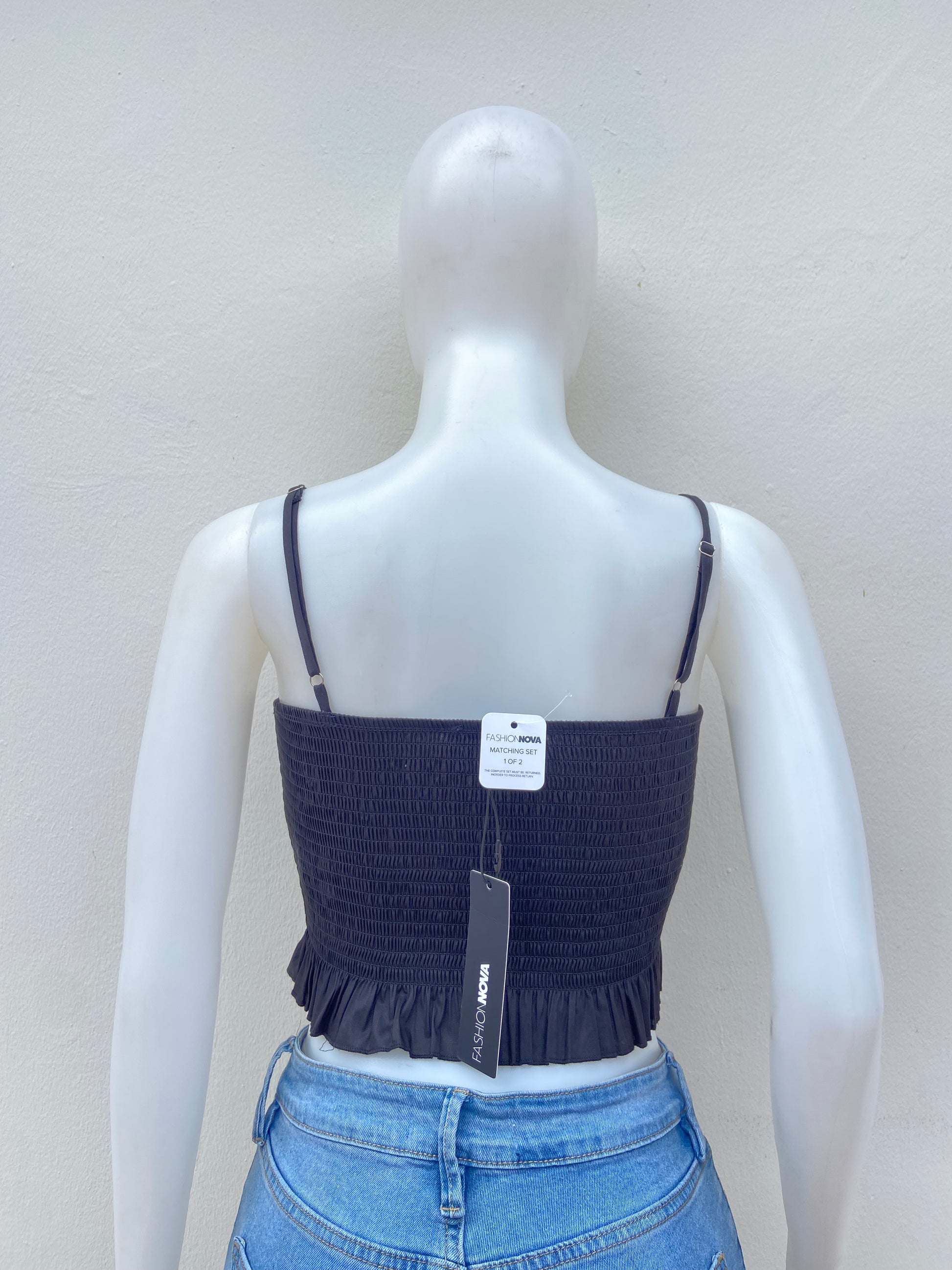 Top, negro con vuelos en la parte inferior y lazos ajustables.