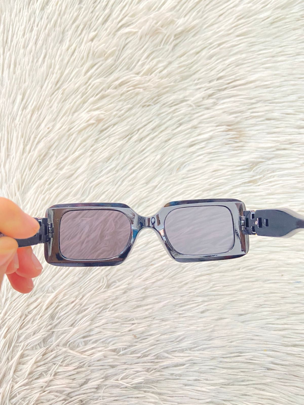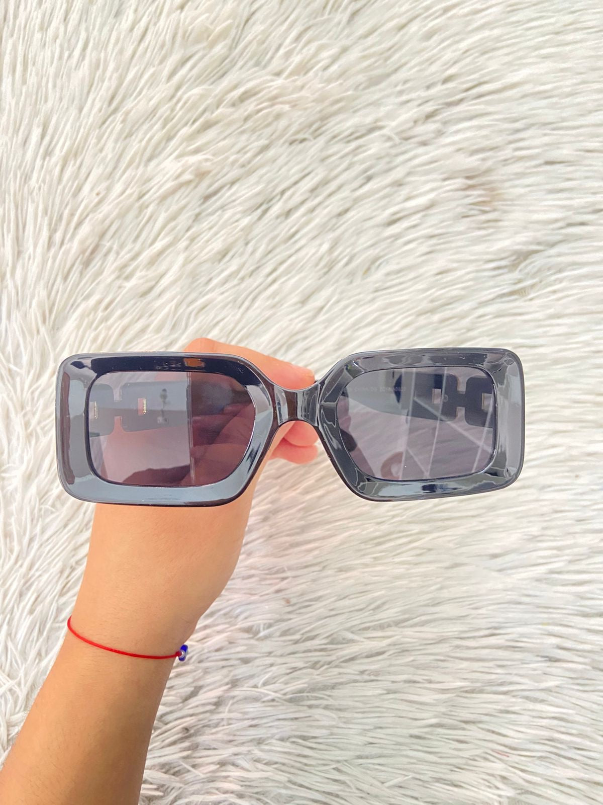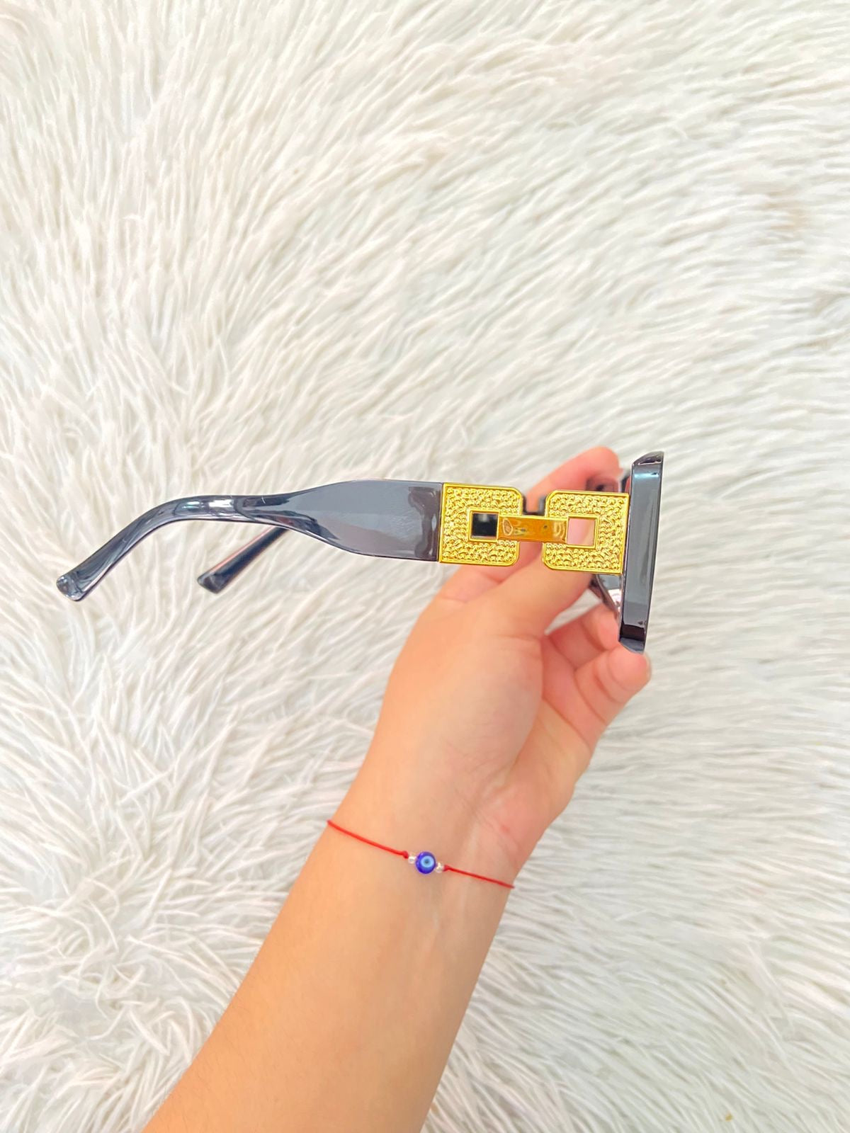 Lentes negros con detalles dorados atras, cuadrados y micas oscuras