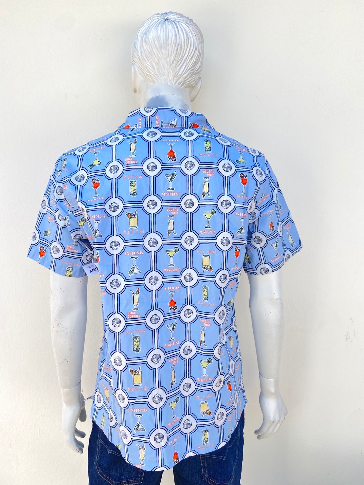 Camisa OLD NAVY Original, en color azul con estampado de bebidas y cocteles.