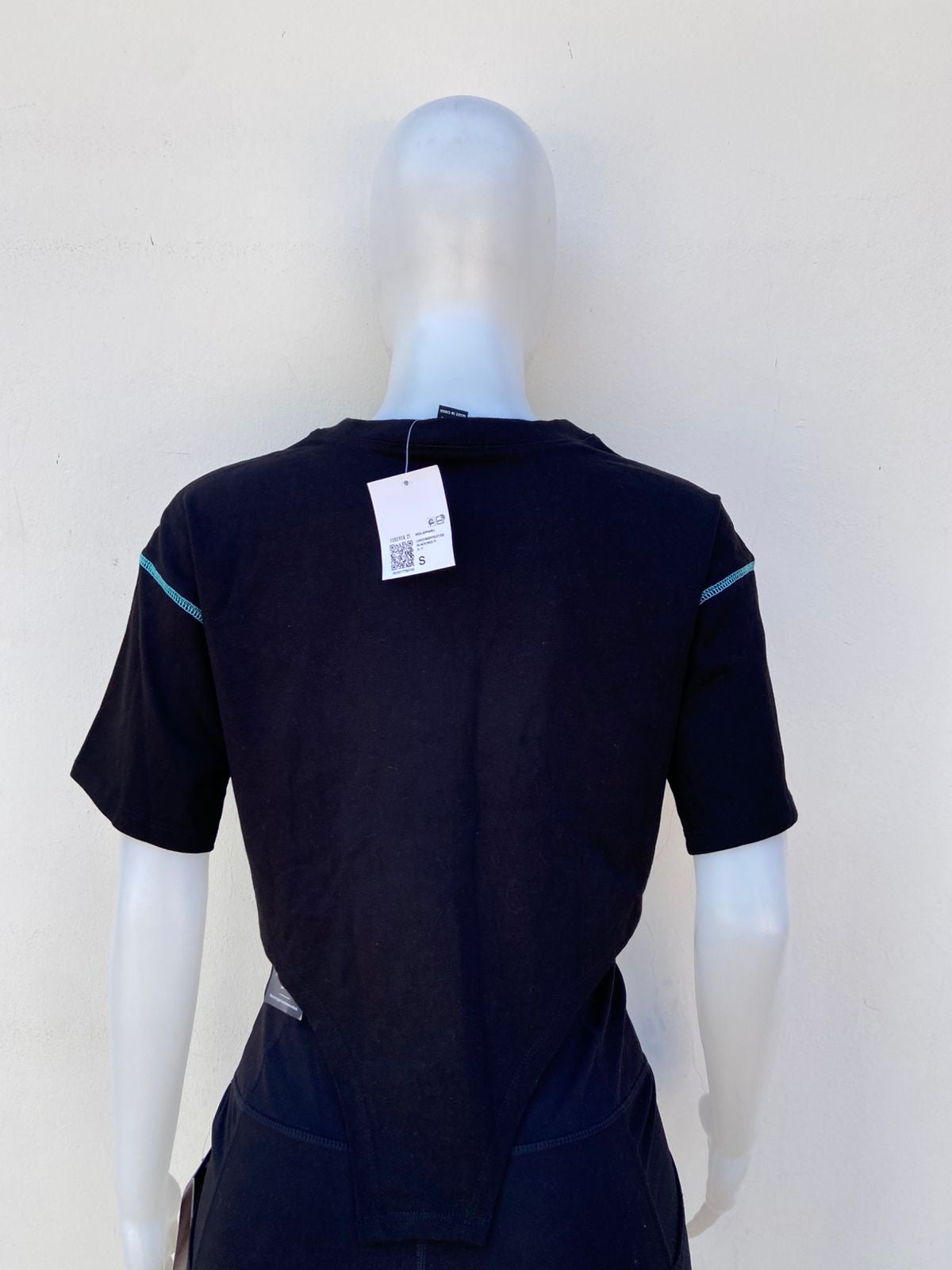 Crop/Top Forever 21 Original en color negro con diseño tribal con llamas de fuego en color gris y costura azul en las mangas.