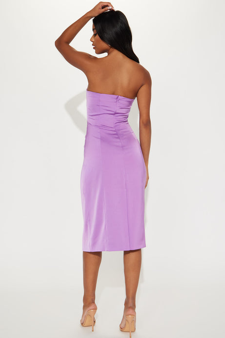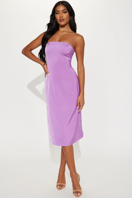 Vestido color morado, Strapper con zipper trasero, largo.
