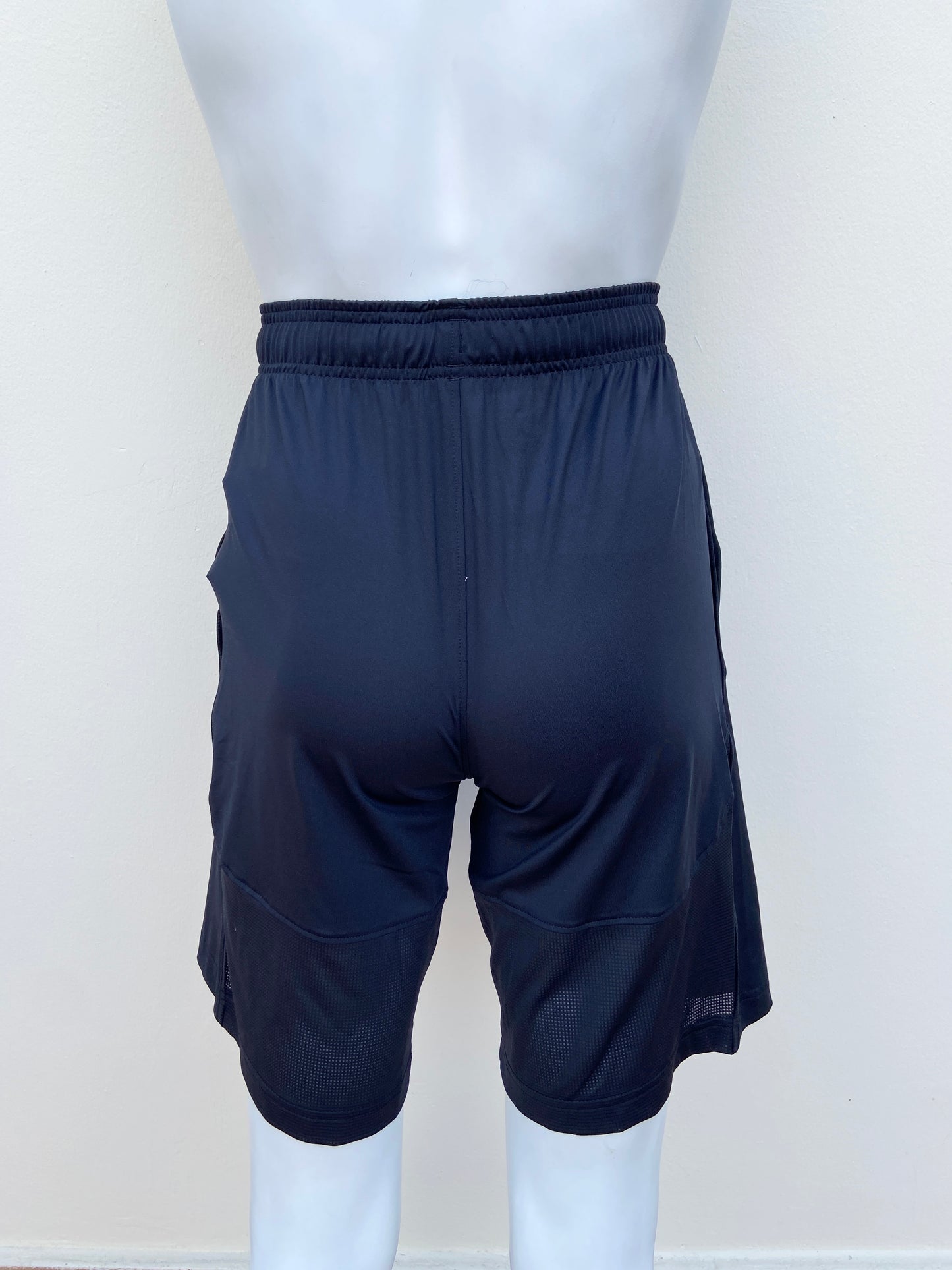 Bermuda Deportiva Under Armour original negra con letras de la marca en azul.