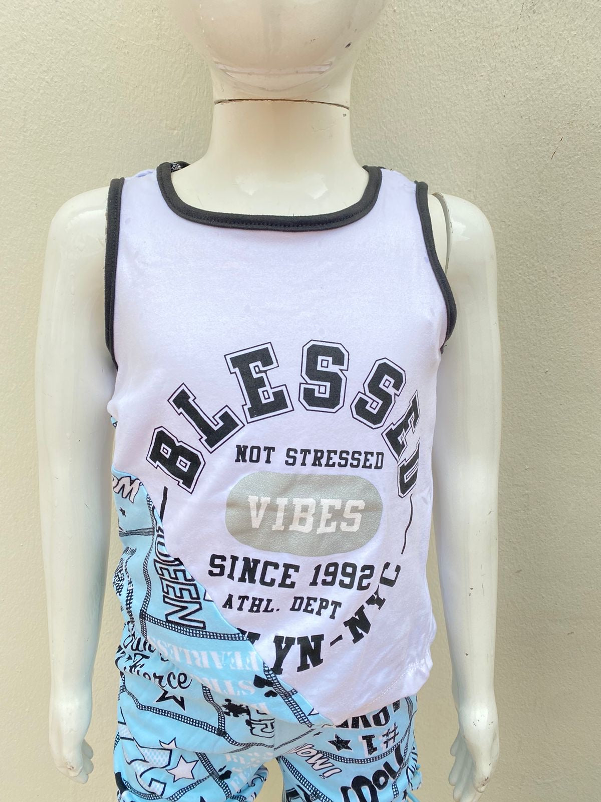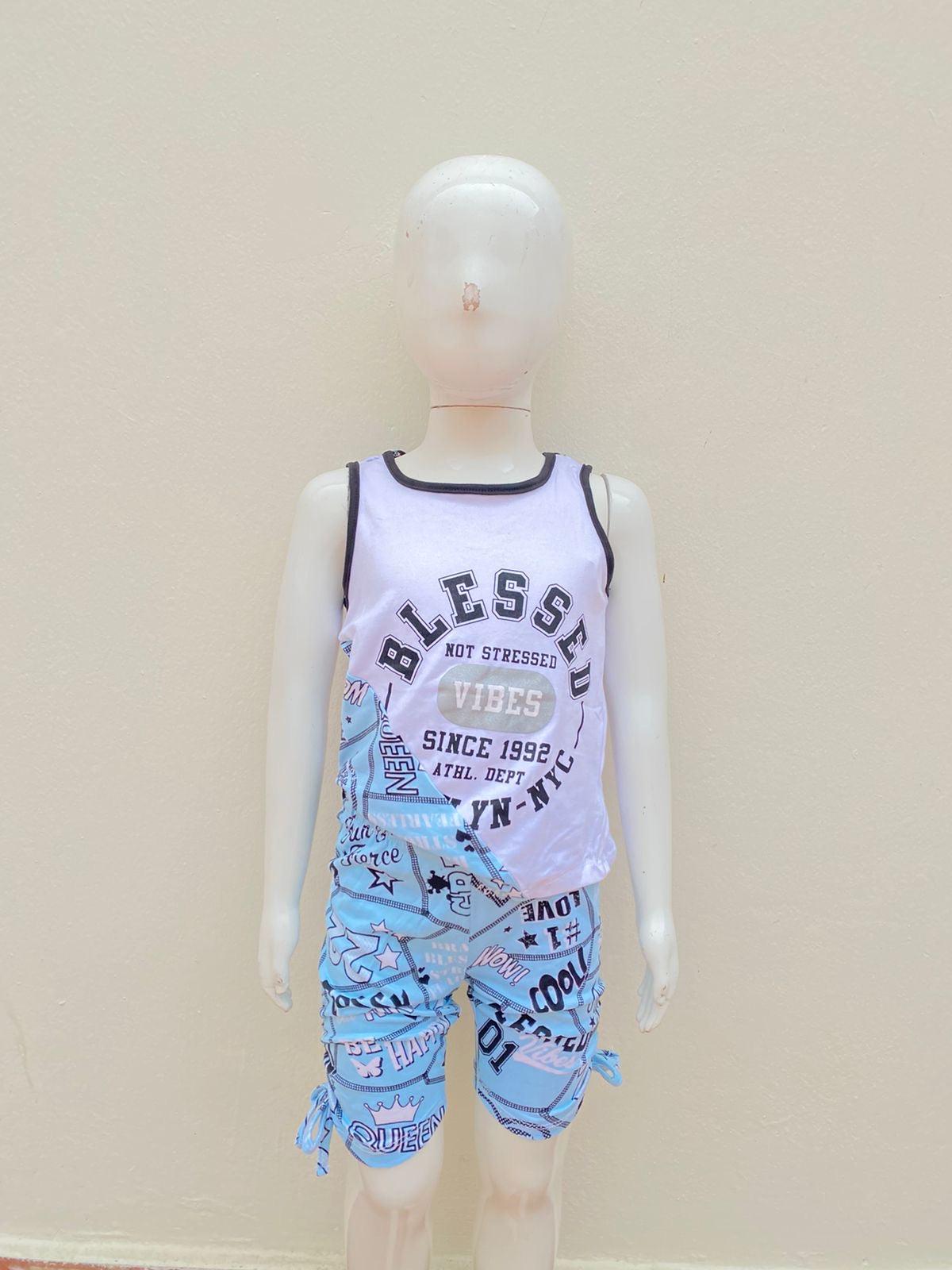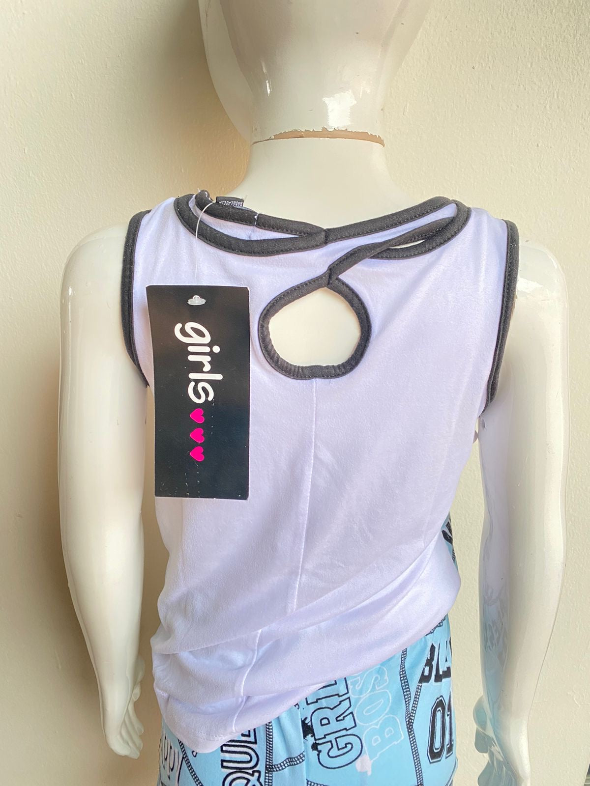 Conjunto Girls original blanco con azul cielo y letras en color negro BLESSED.