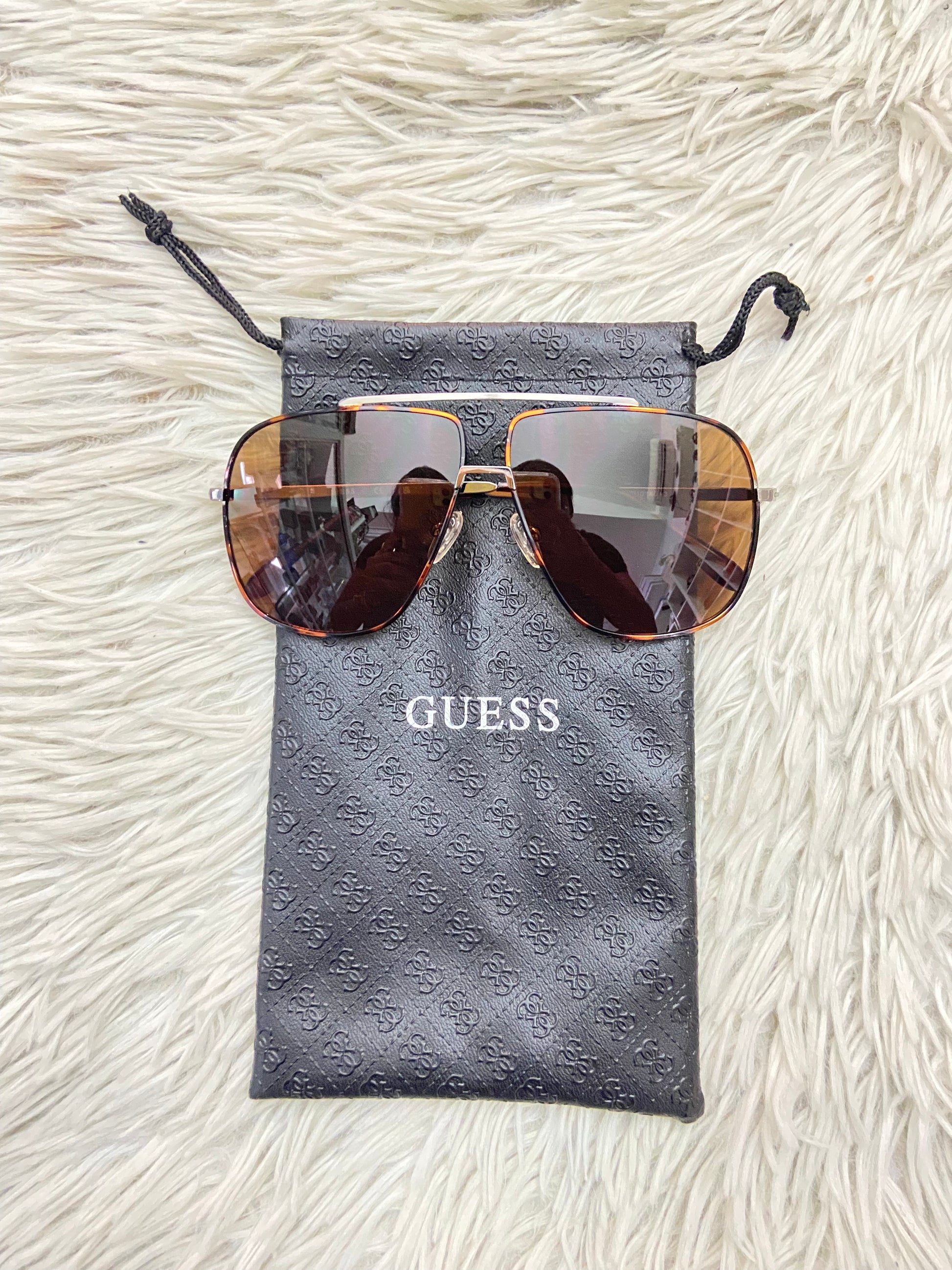Lentes GUESS original, diseñados con protección UV 100-400 para proteger tu visión. Marrón con montura en animal print y micas marrones.