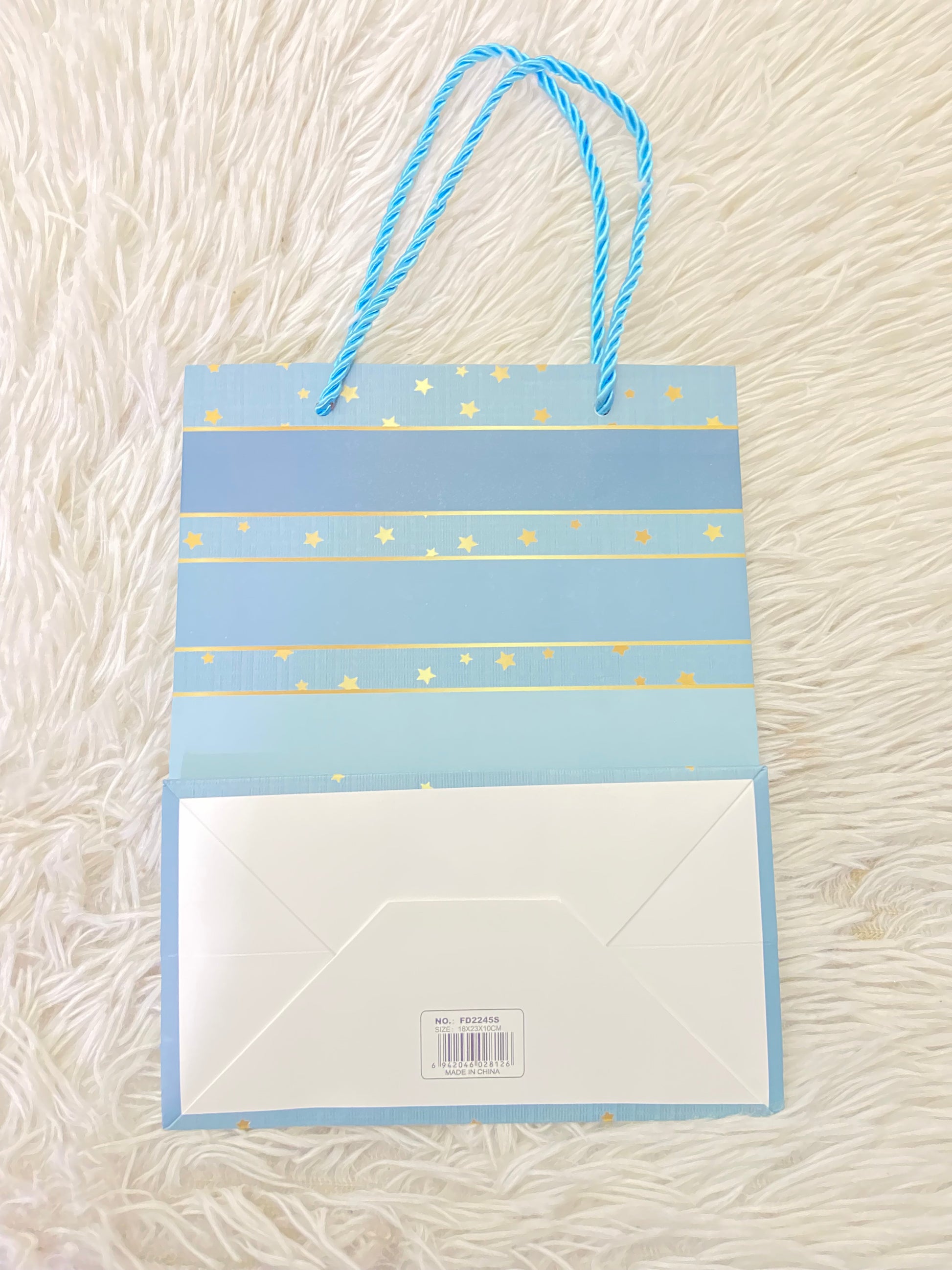 Shopping, azul claro con estampado de estrellas doradas, PEQUEÑO.