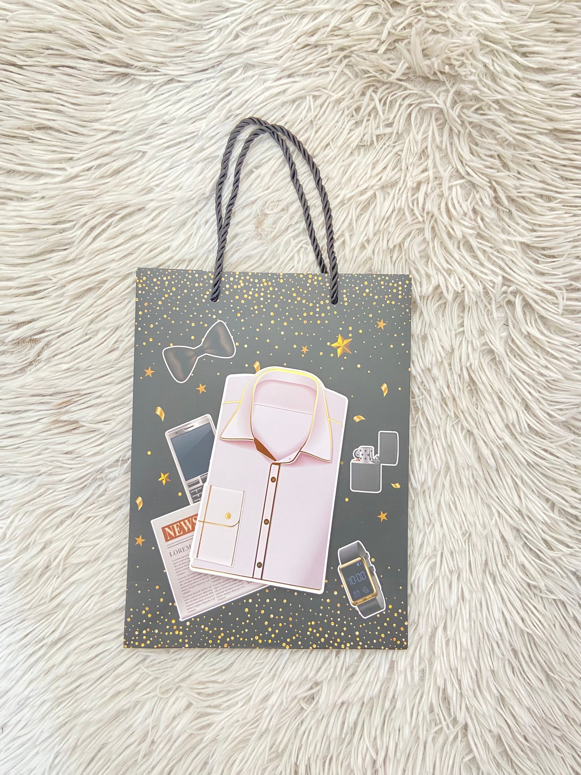 Shopping, negro con estampado de camisa blanca, PEQUEÑO.