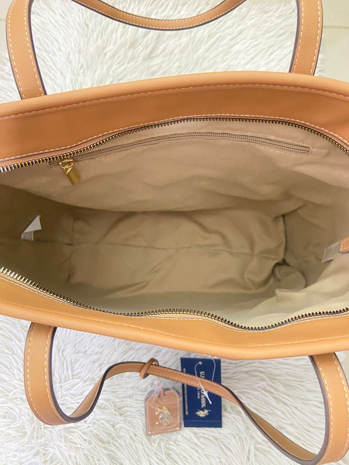 Cartera U.S POLO ASSN. Original en color marron placa de la marca al frente bolsillo atras y charms Adiccional con logotigo de la marca