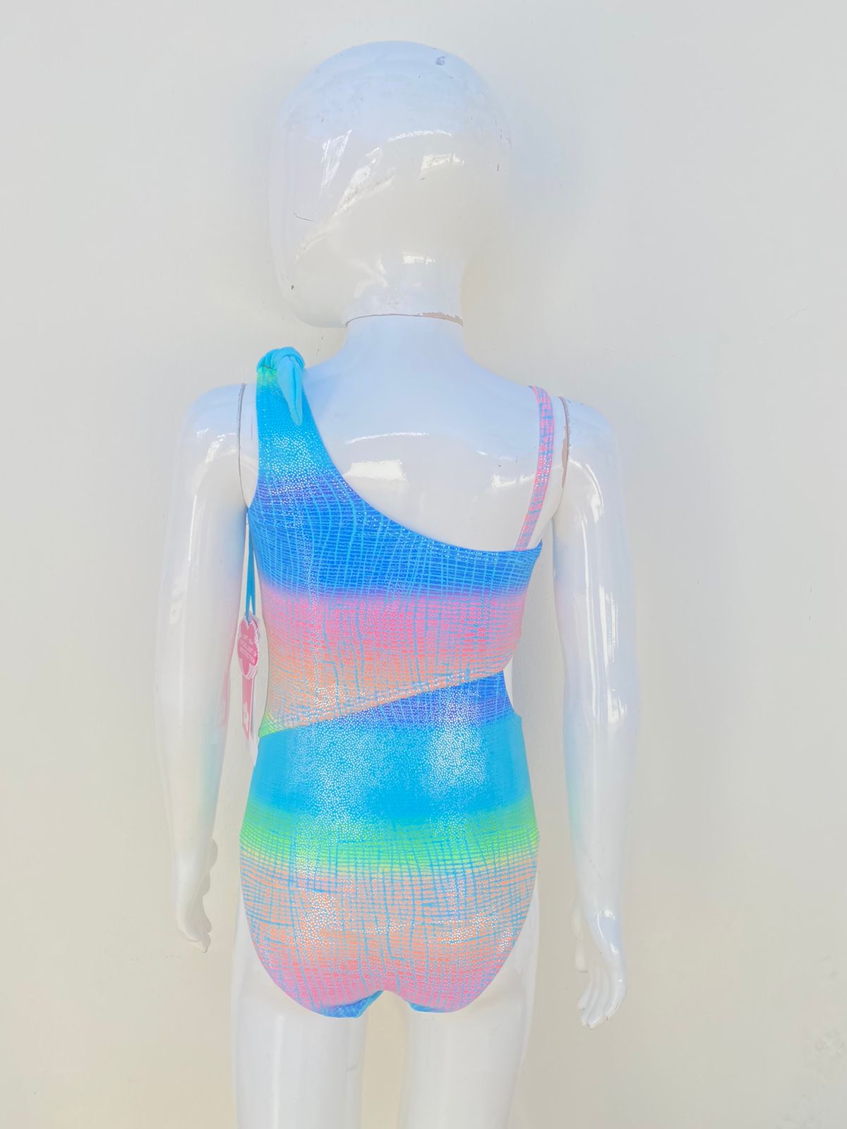 Biquini Traje de baño niñas Limited Too original azul aqua con rompes en, rosado, verde con brillos.