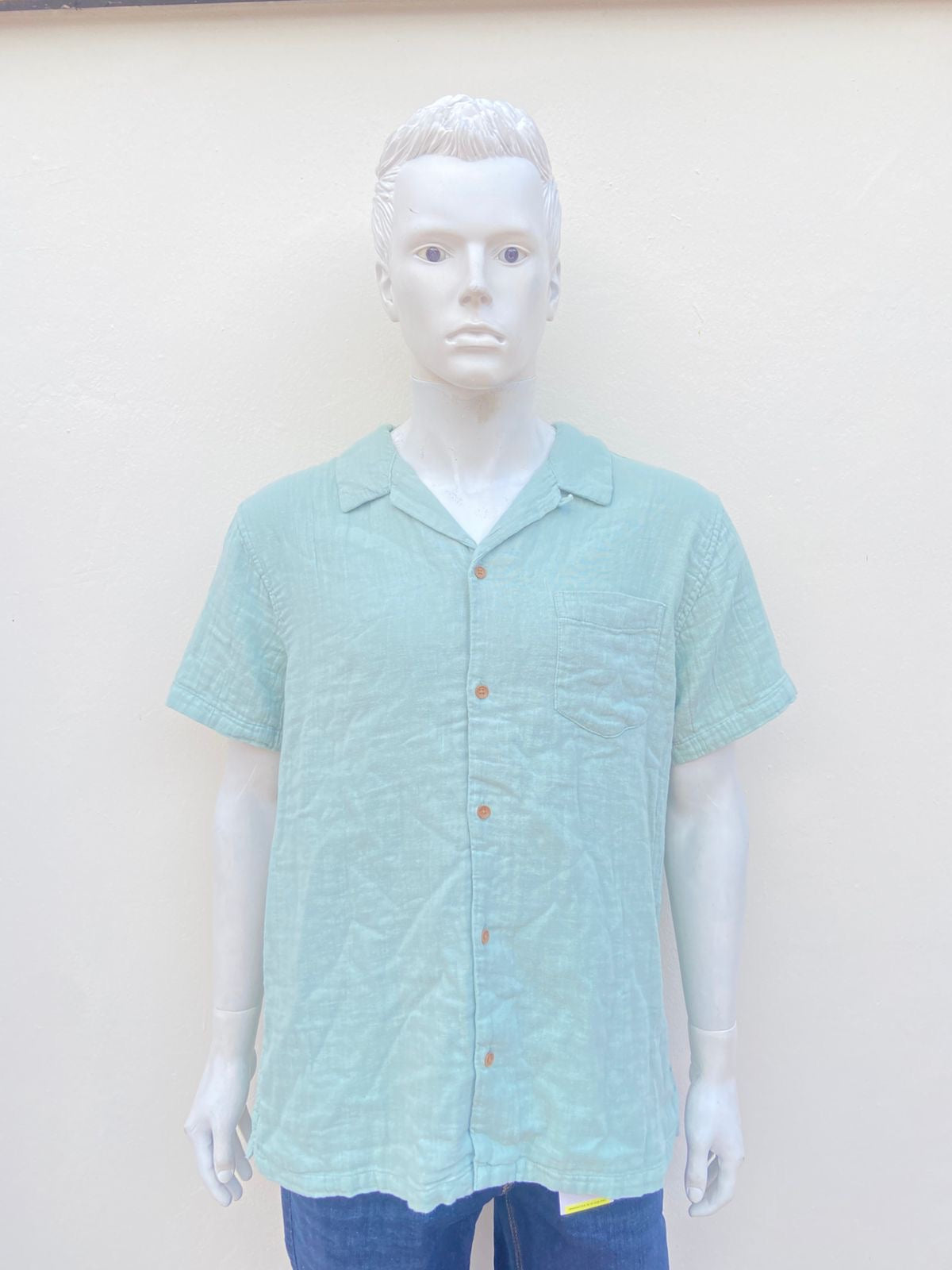 Camisa 100% algodón organico AEROPOSTALE Original, color verde claro con botones en color marron.