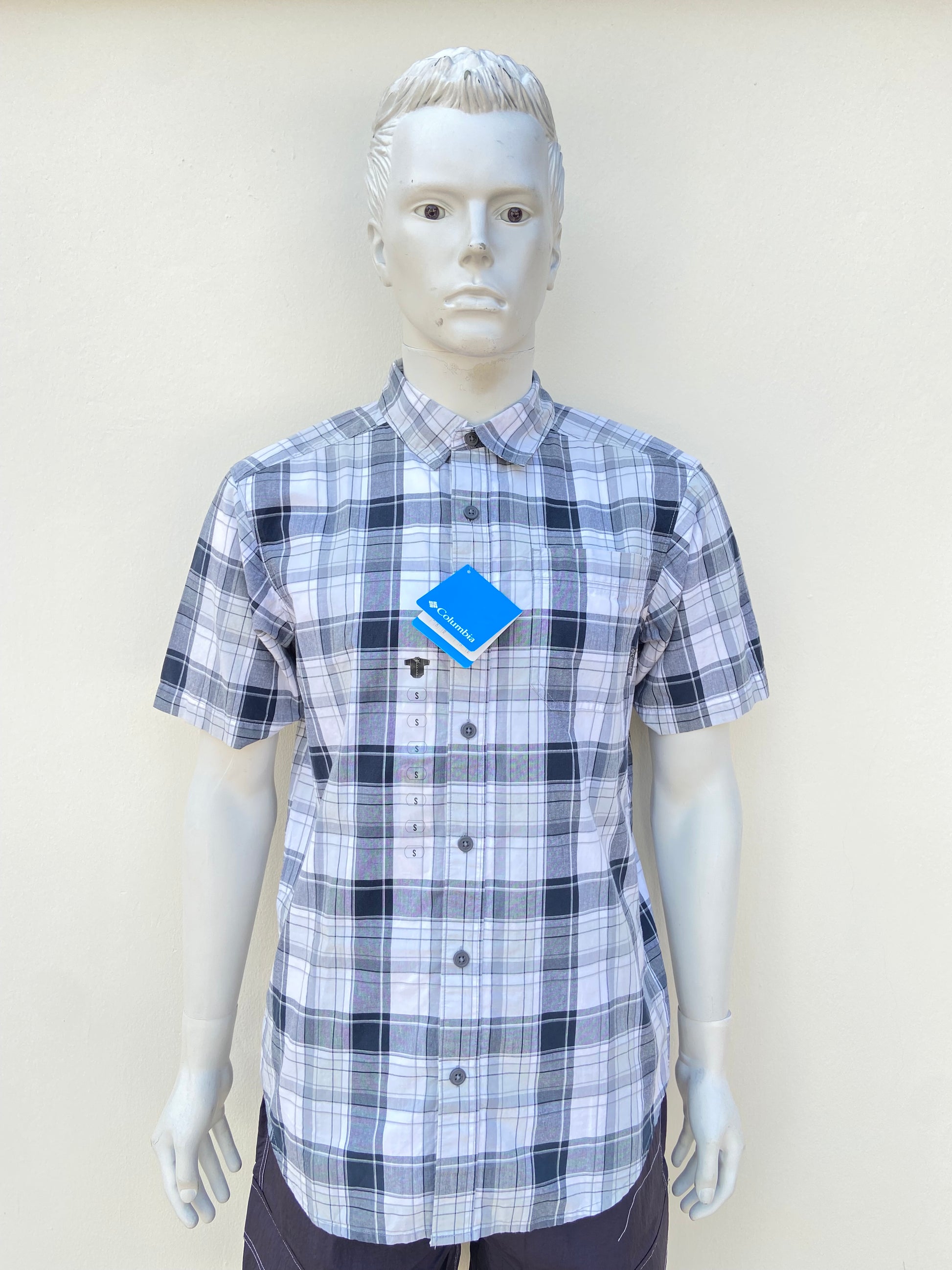 Camisa COLUMBIA Original gris con cuadros en color blanco y negro.