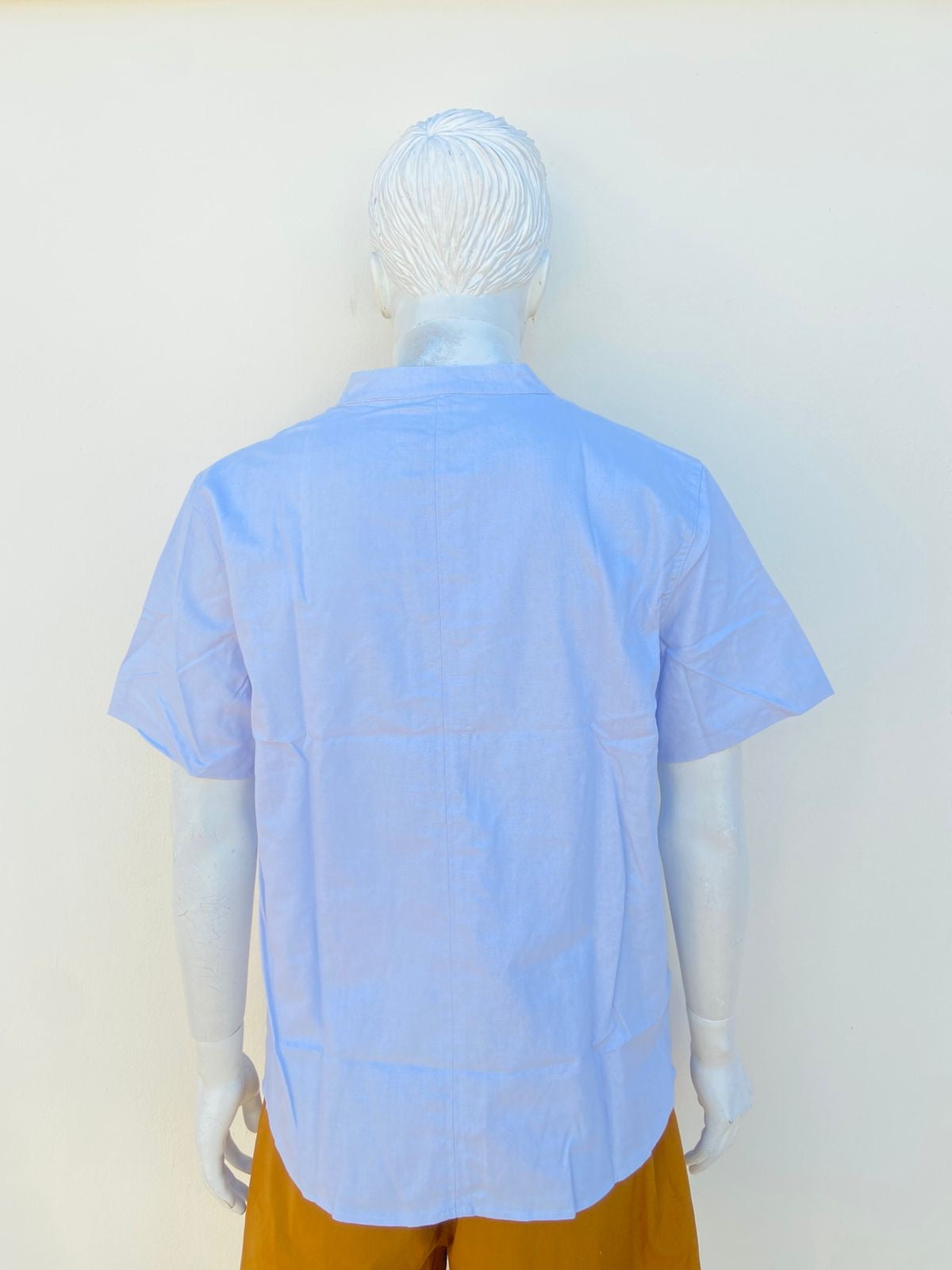Camisa en color azul claro, manga corta y cuello mandarin.