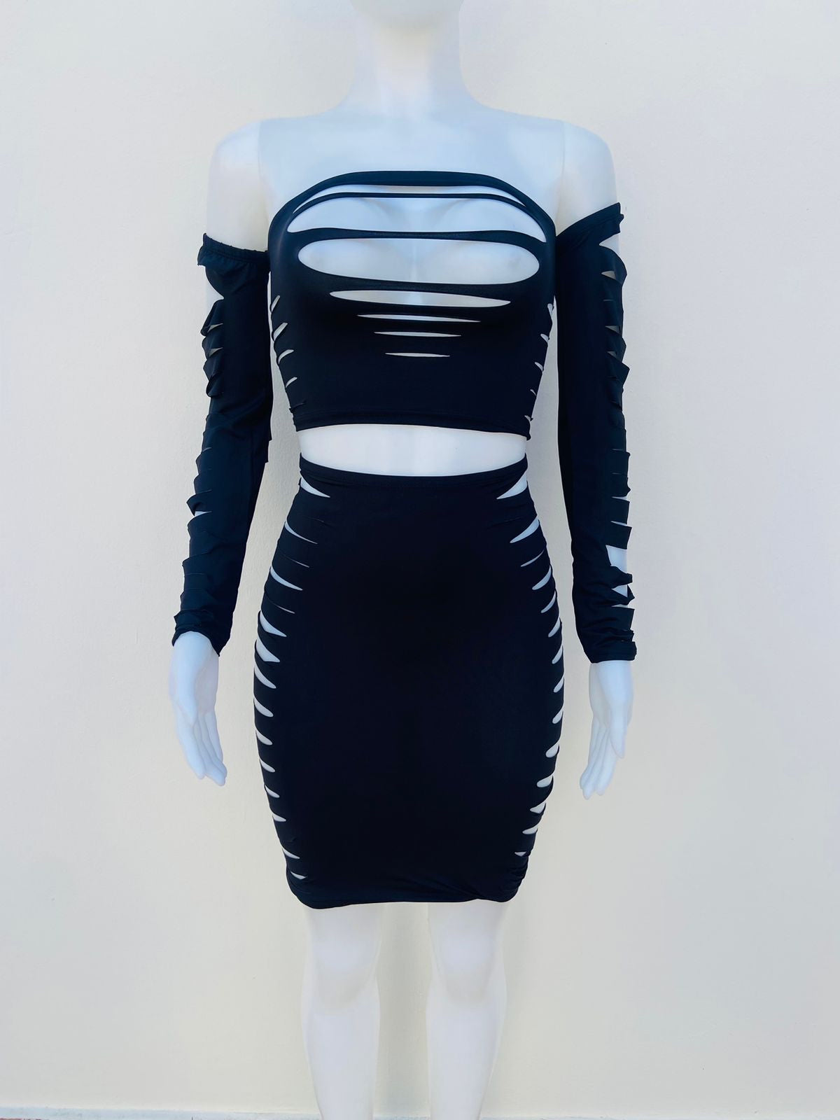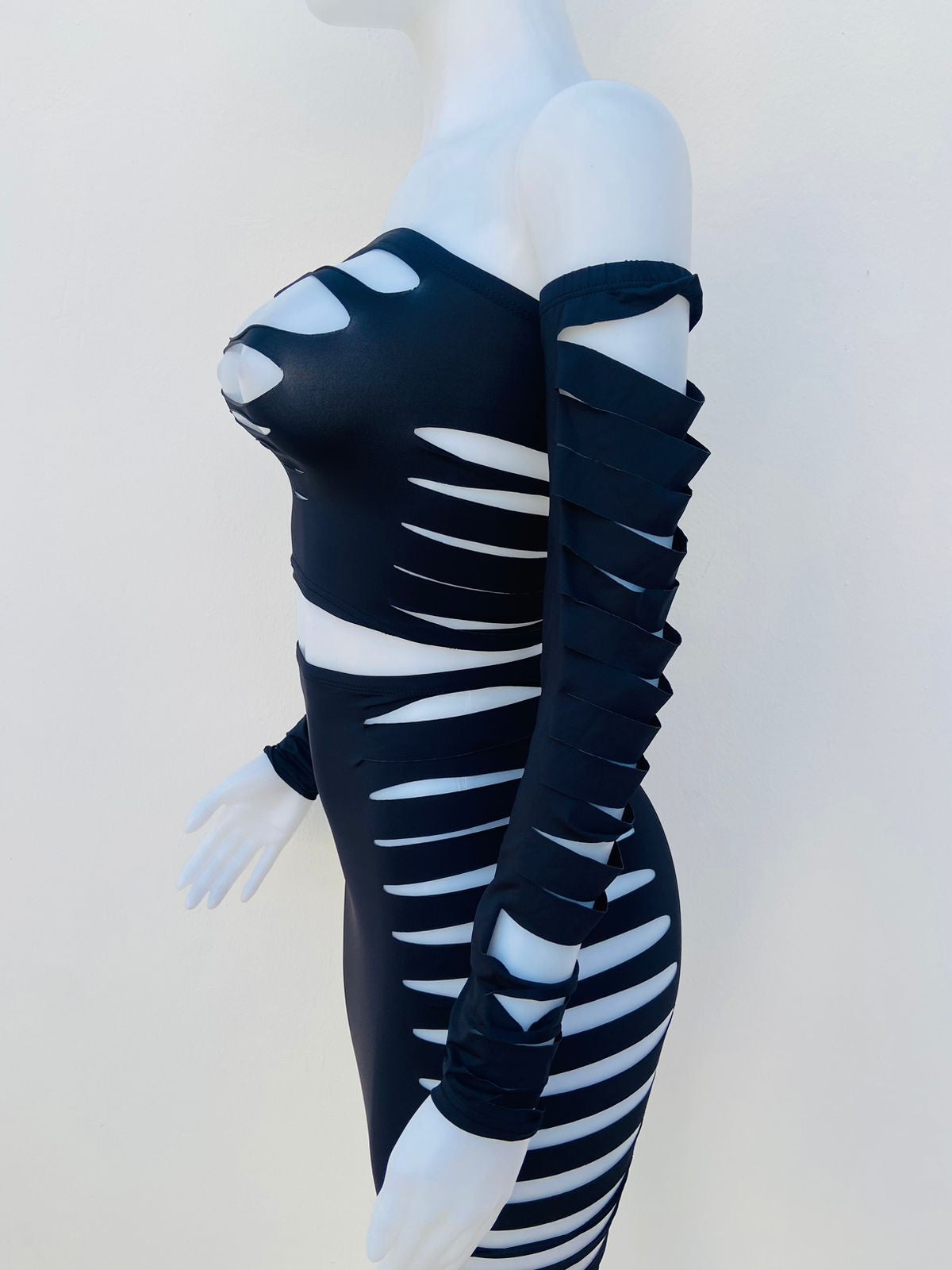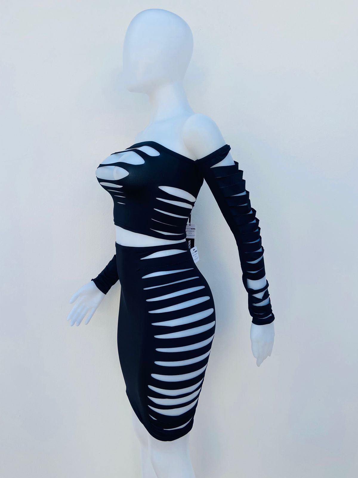 Conjunto FASHION NOVA original, negro con mangas largas rasgado.