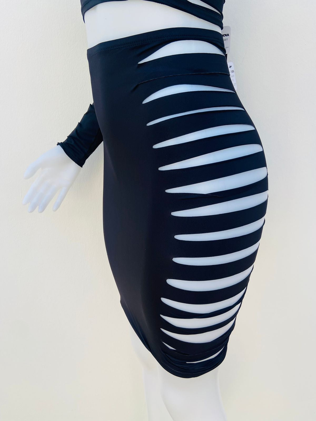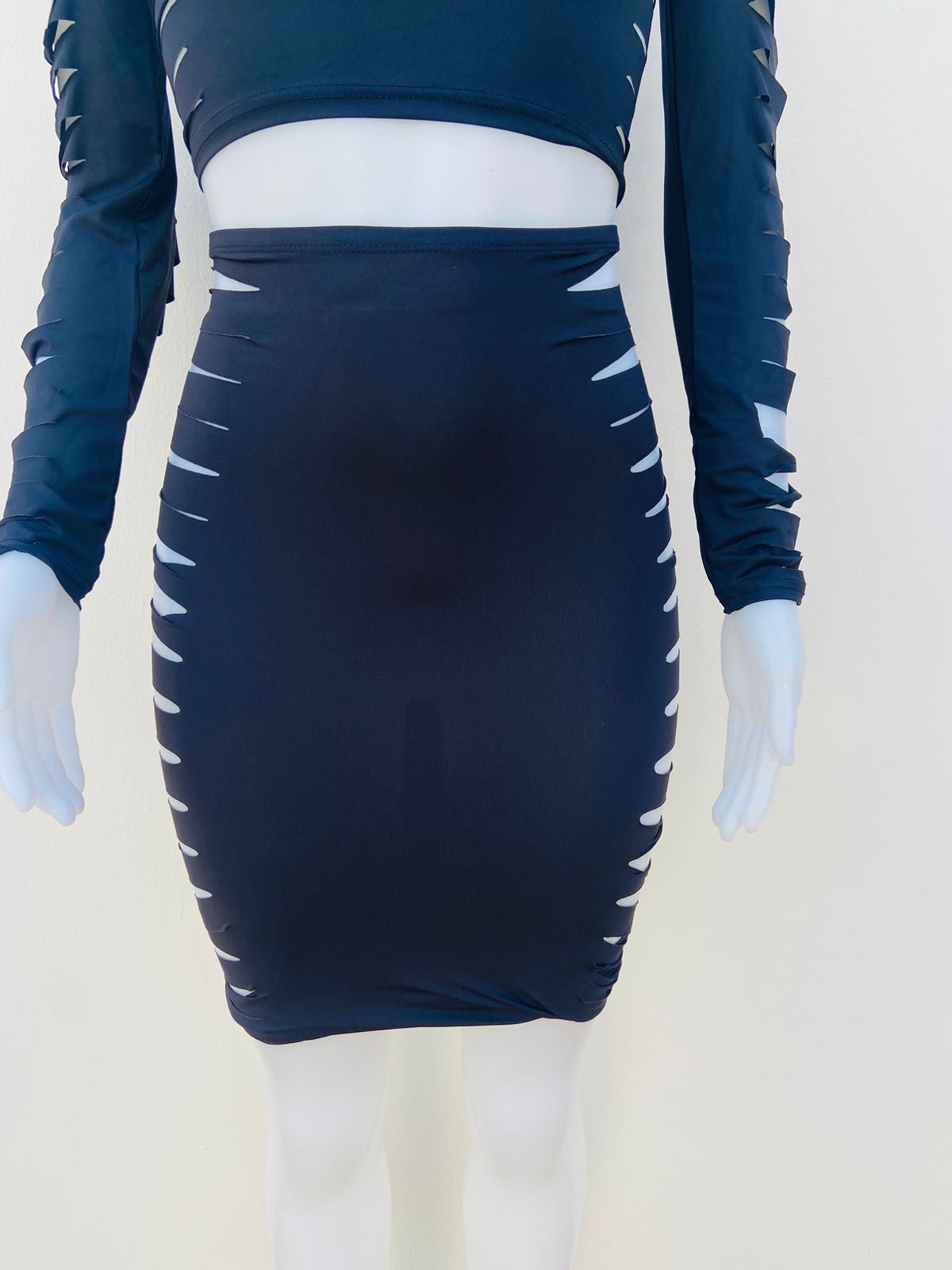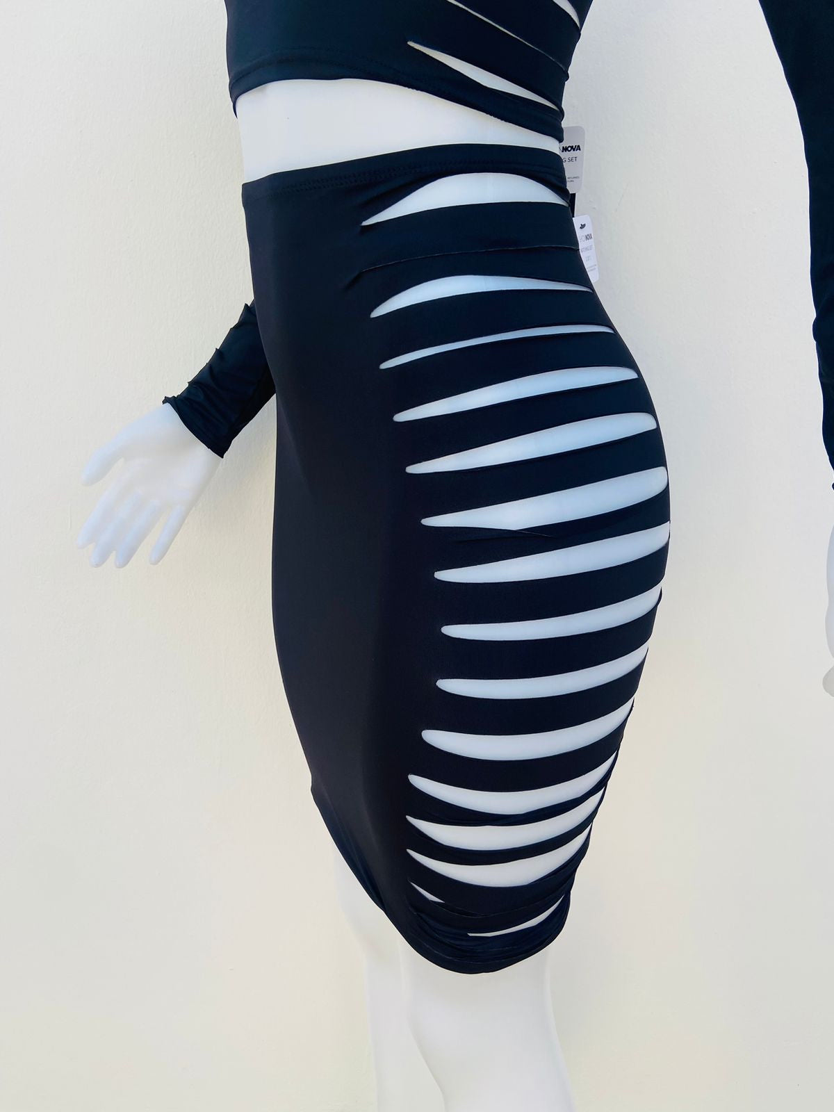 Conjunto FASHION NOVA original, negro con mangas largas rasgado.