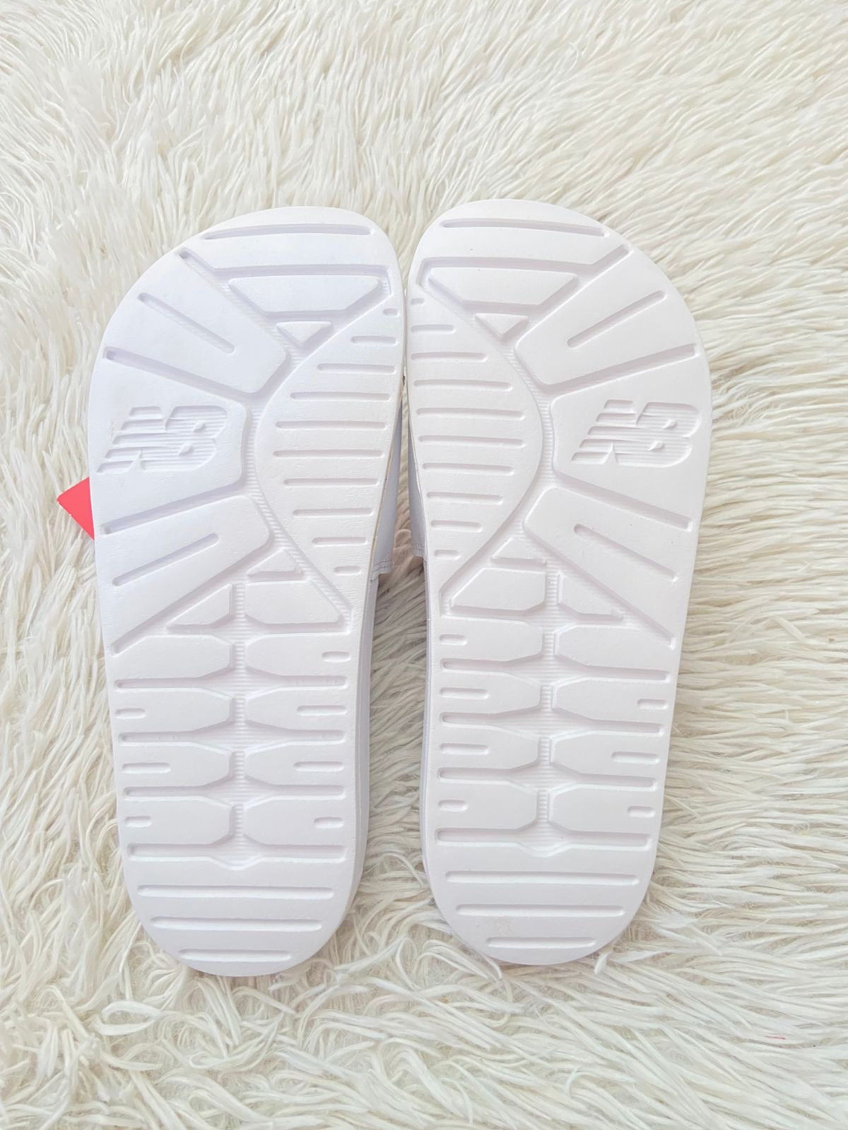 Sandalias NEW BALANCE original, azul marino con blanco y letras N al frente.
