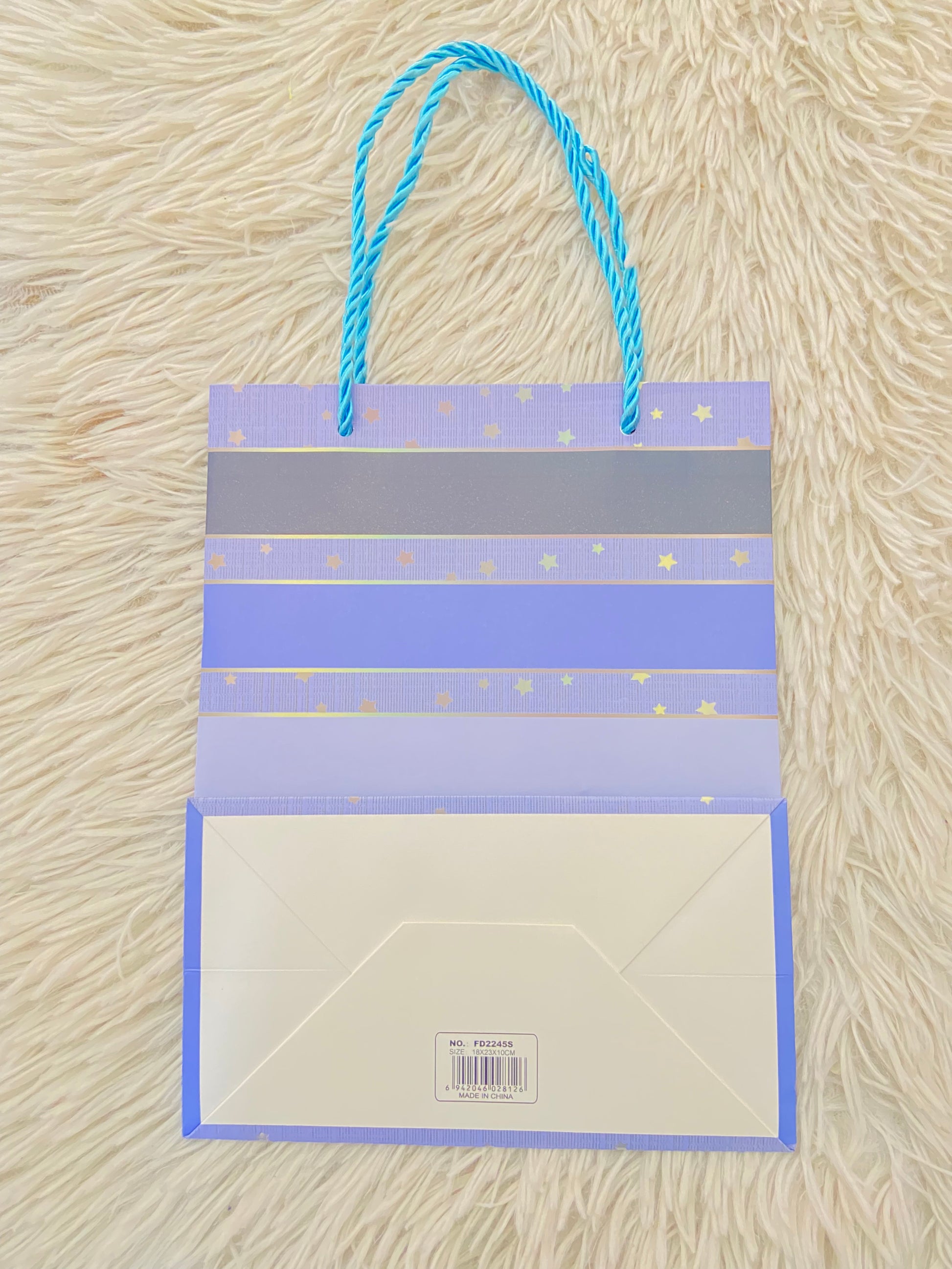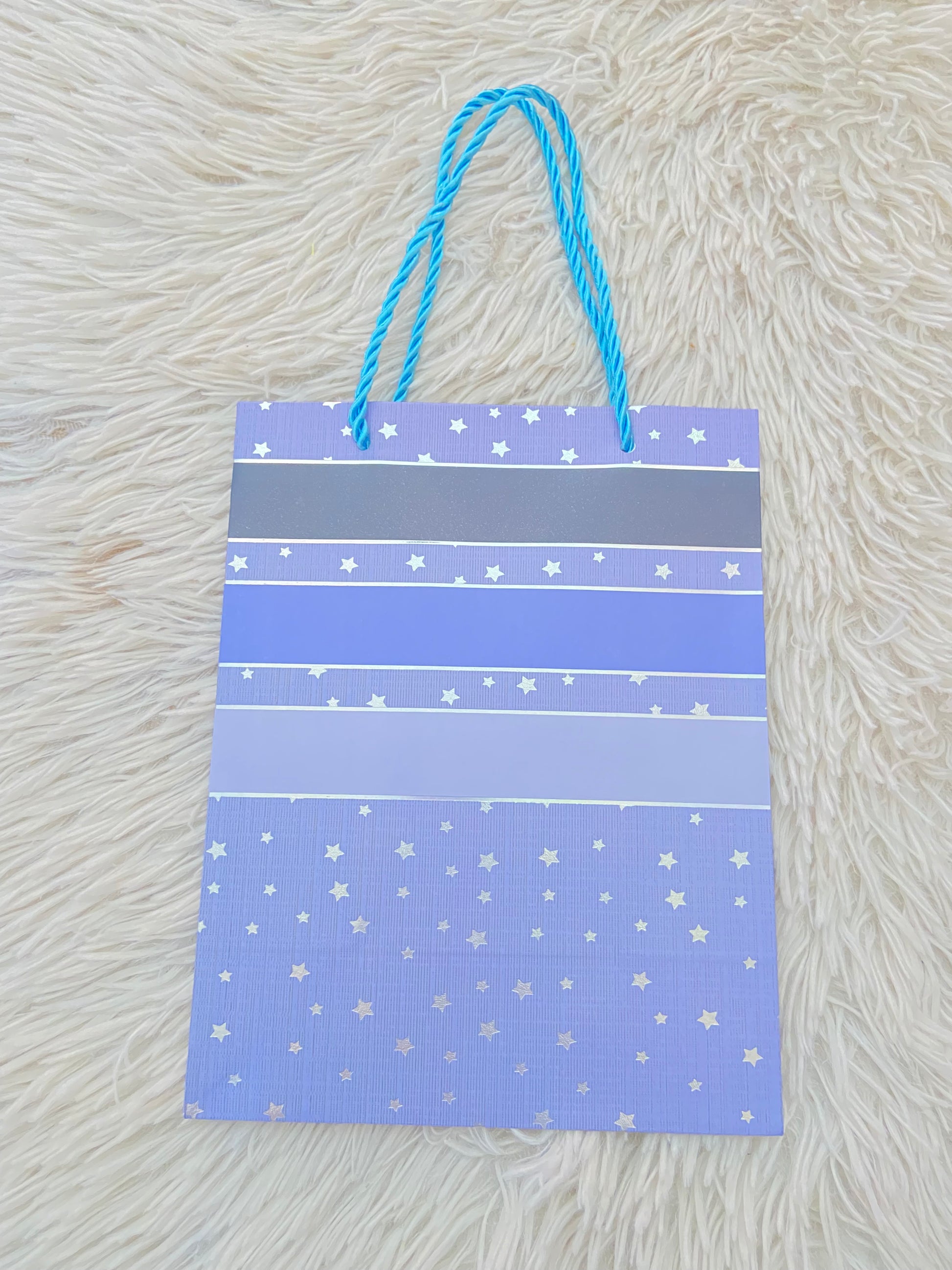 Shopping, azul con rayas en color azul y estrellas plateadas, PEQUEÑO.