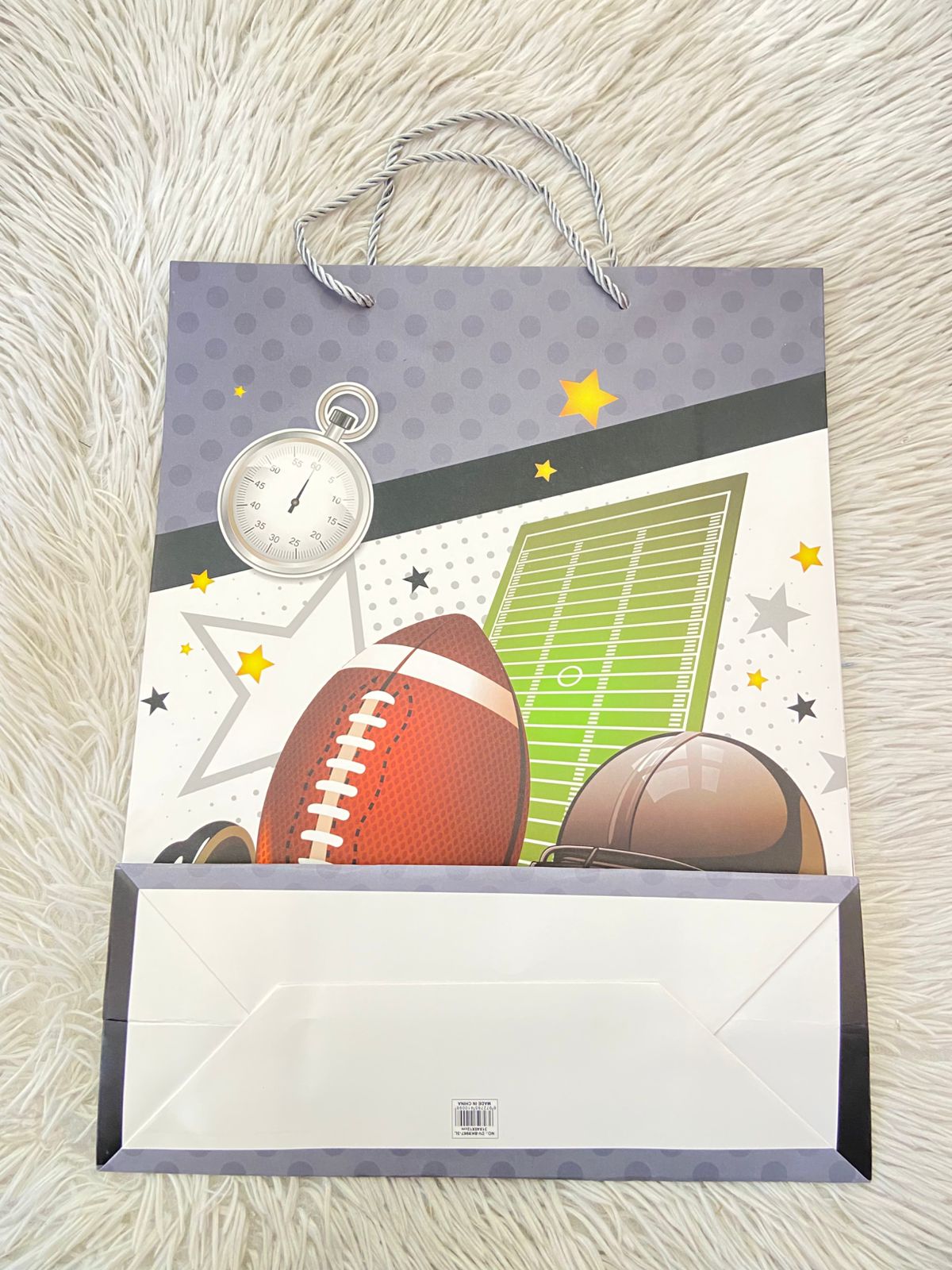 Shopping, gris y blanco, con estampado de futbol americano, GRANDE.