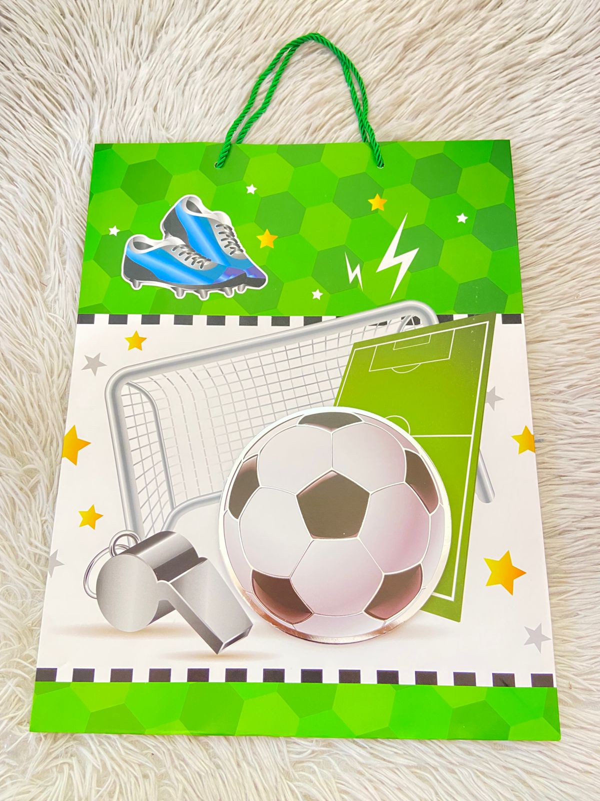 Shopping, verde con blanco y está de futbol, GRANDE.