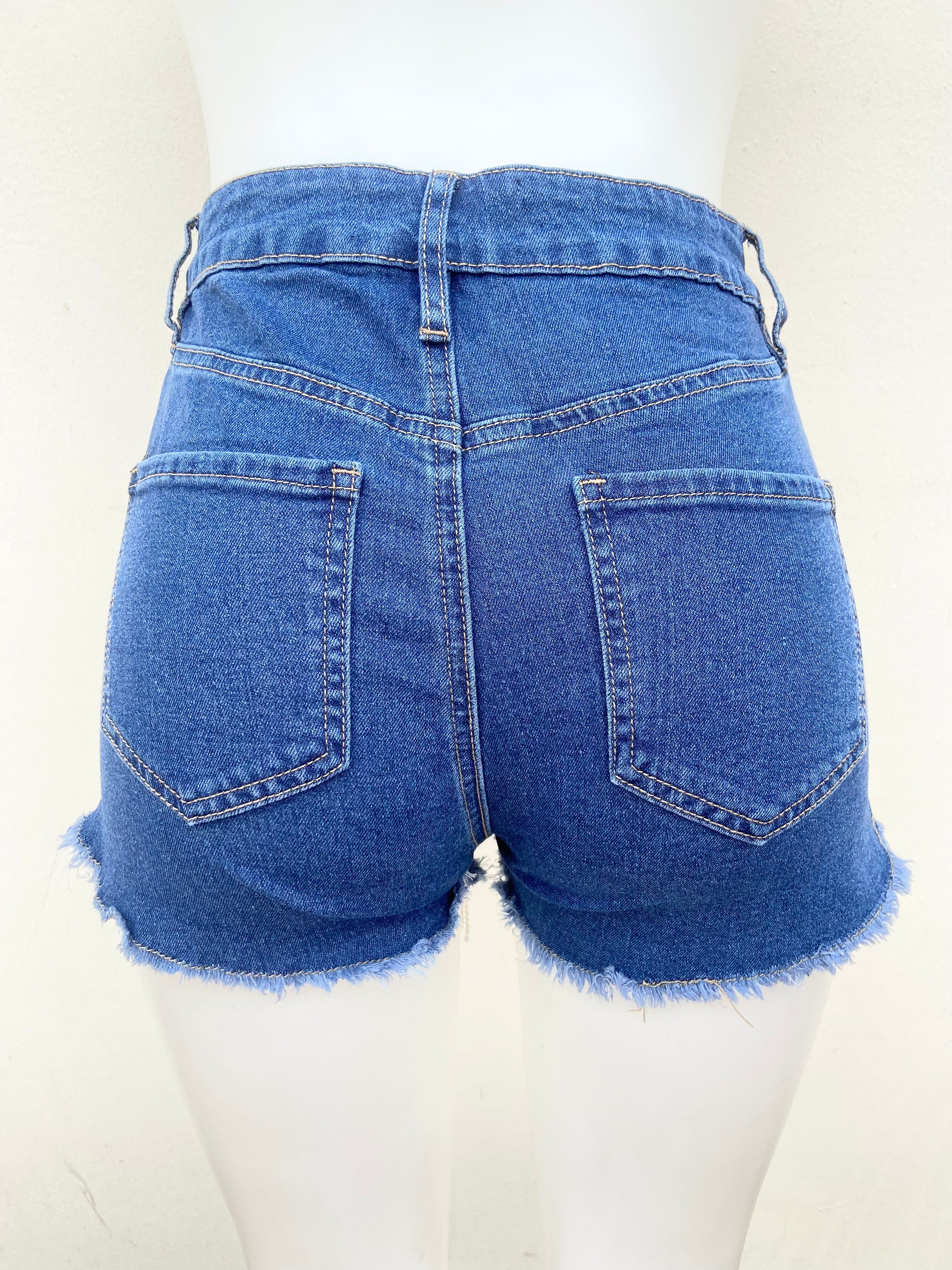 Short azul marino oscuro con detalles de diamantes colgantes.