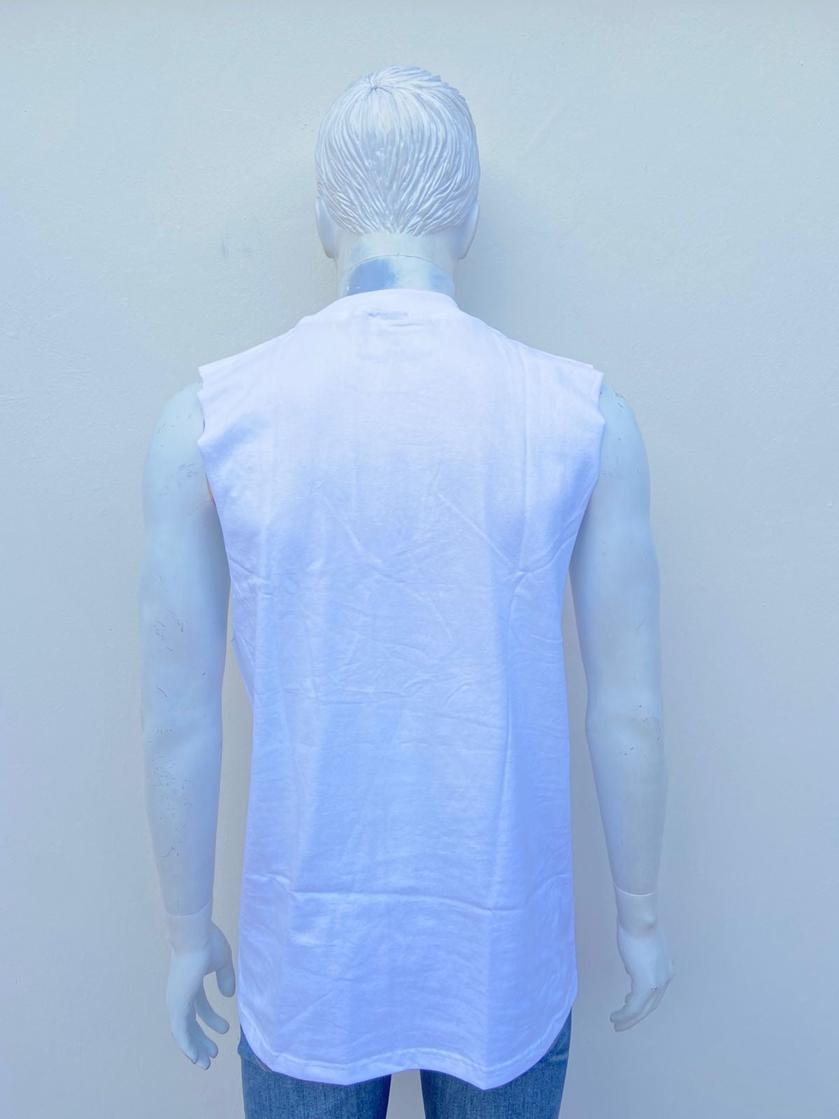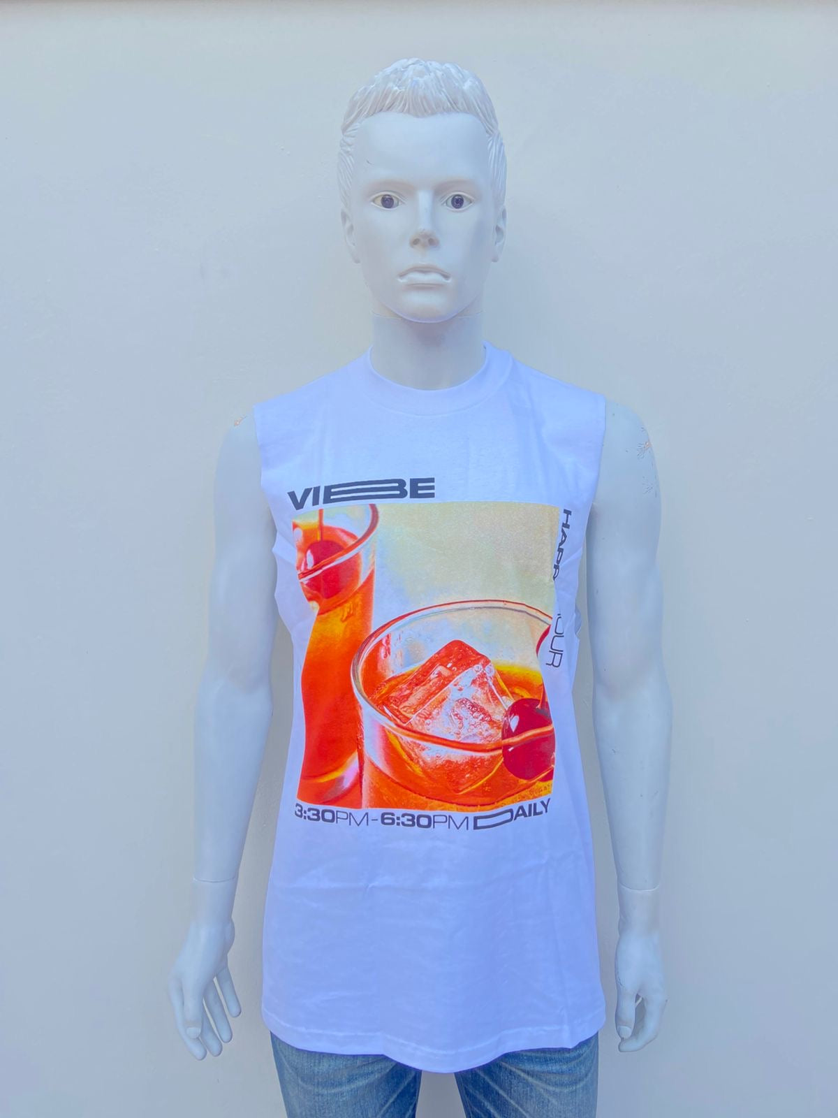 Franela blaca con estampado de copas y letras VIBE, HAPPY HOUR