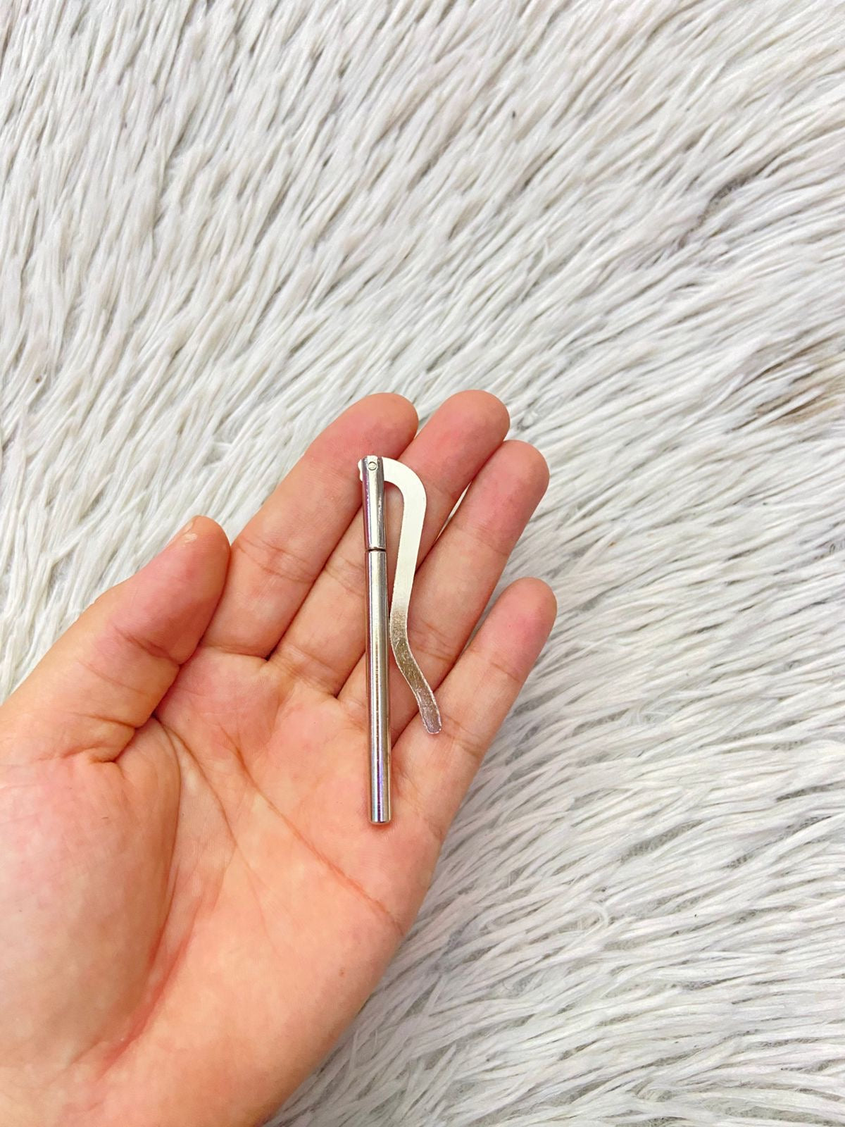 Billetera pequeña en color negra con clip para billetes, espacios para tarjetas y espacio transparente para cedula o licencia.