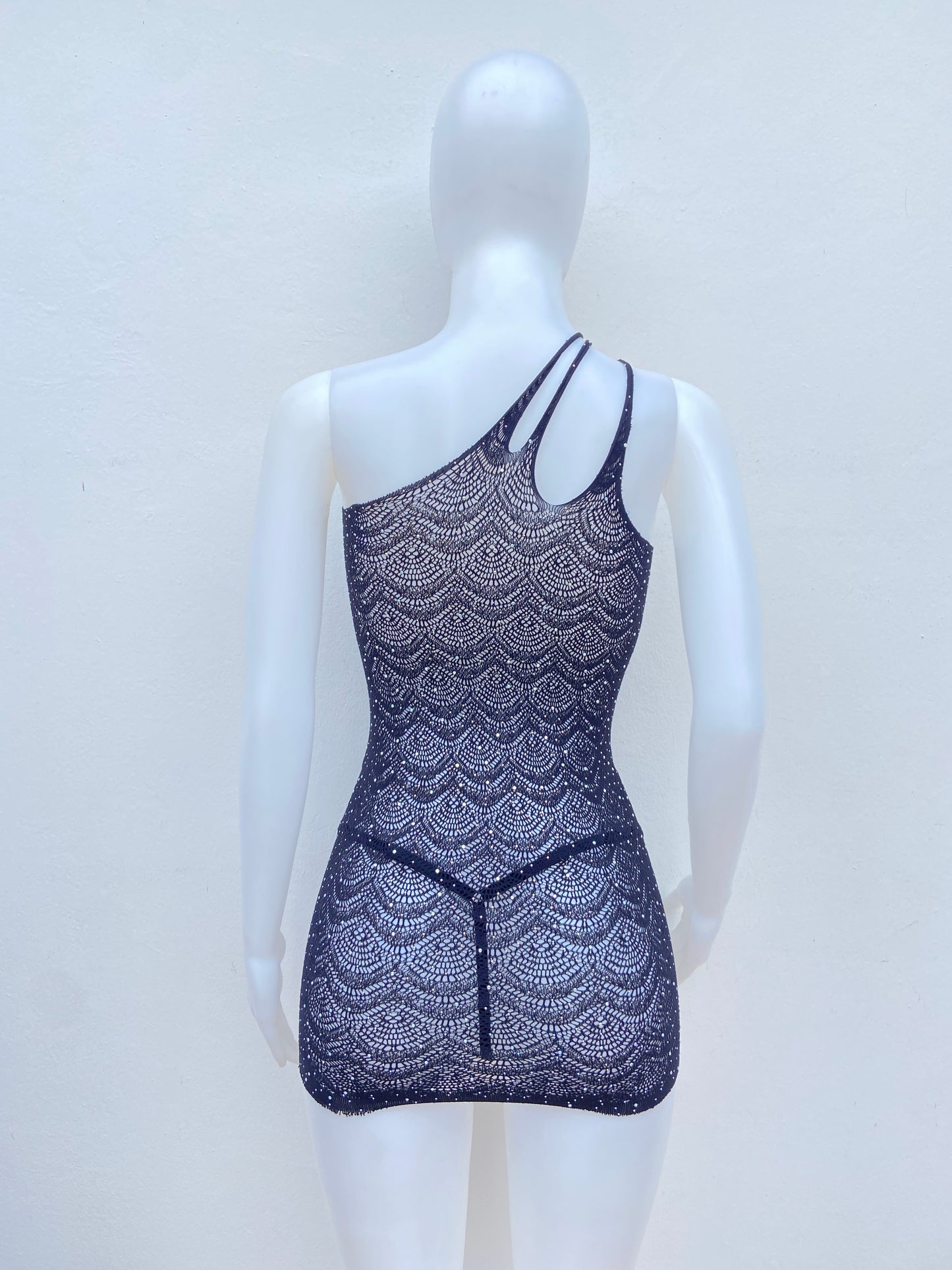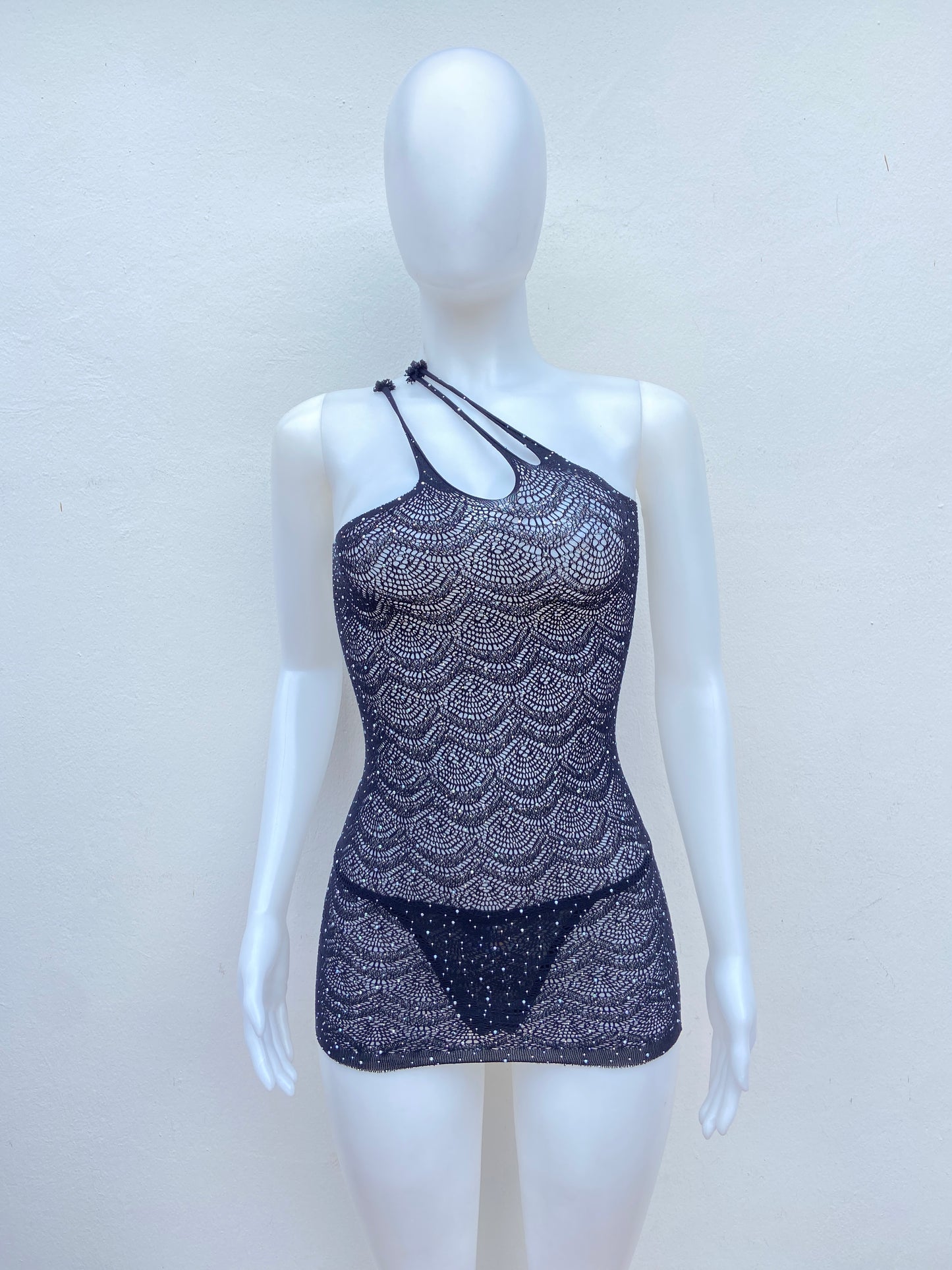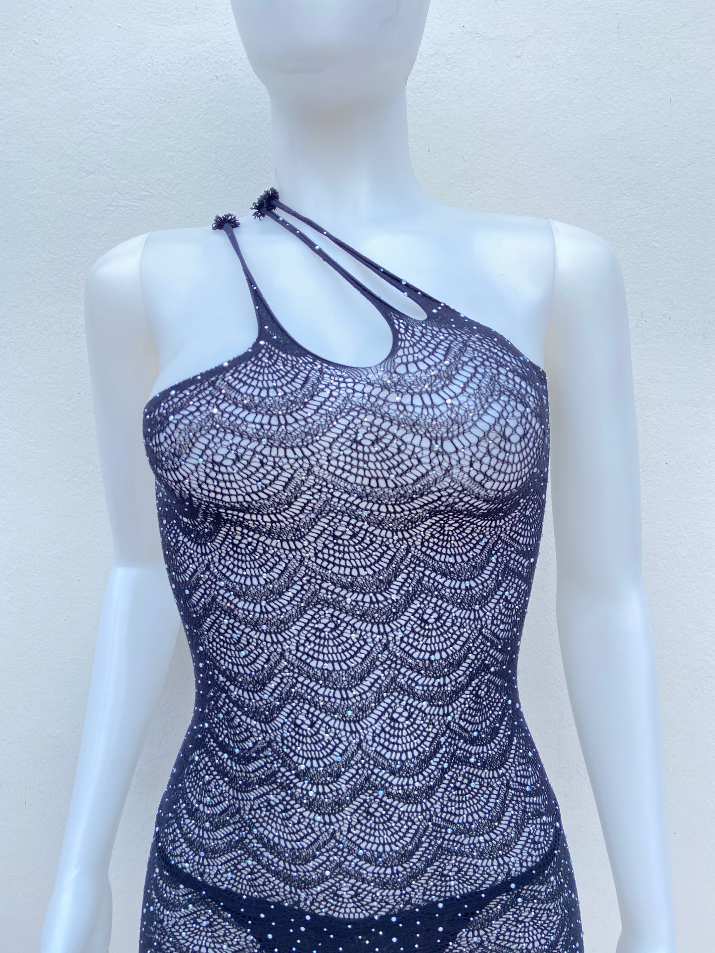 Vestido Fashion Nova original negro transparente con brillos, con Panti.