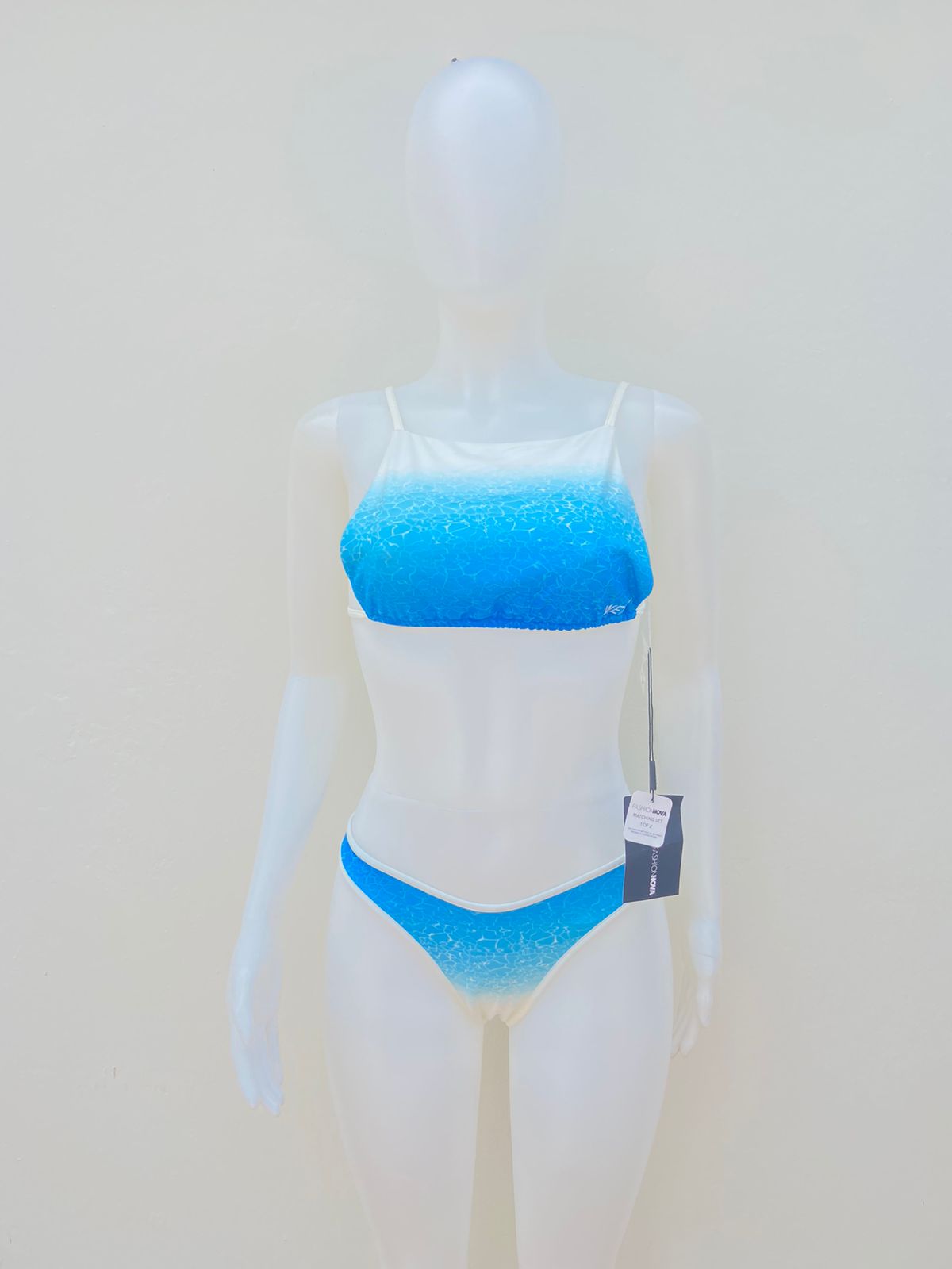 Biquini, de dos piezas azul cielo con blanco estilo de piscina CLEAR WATERS