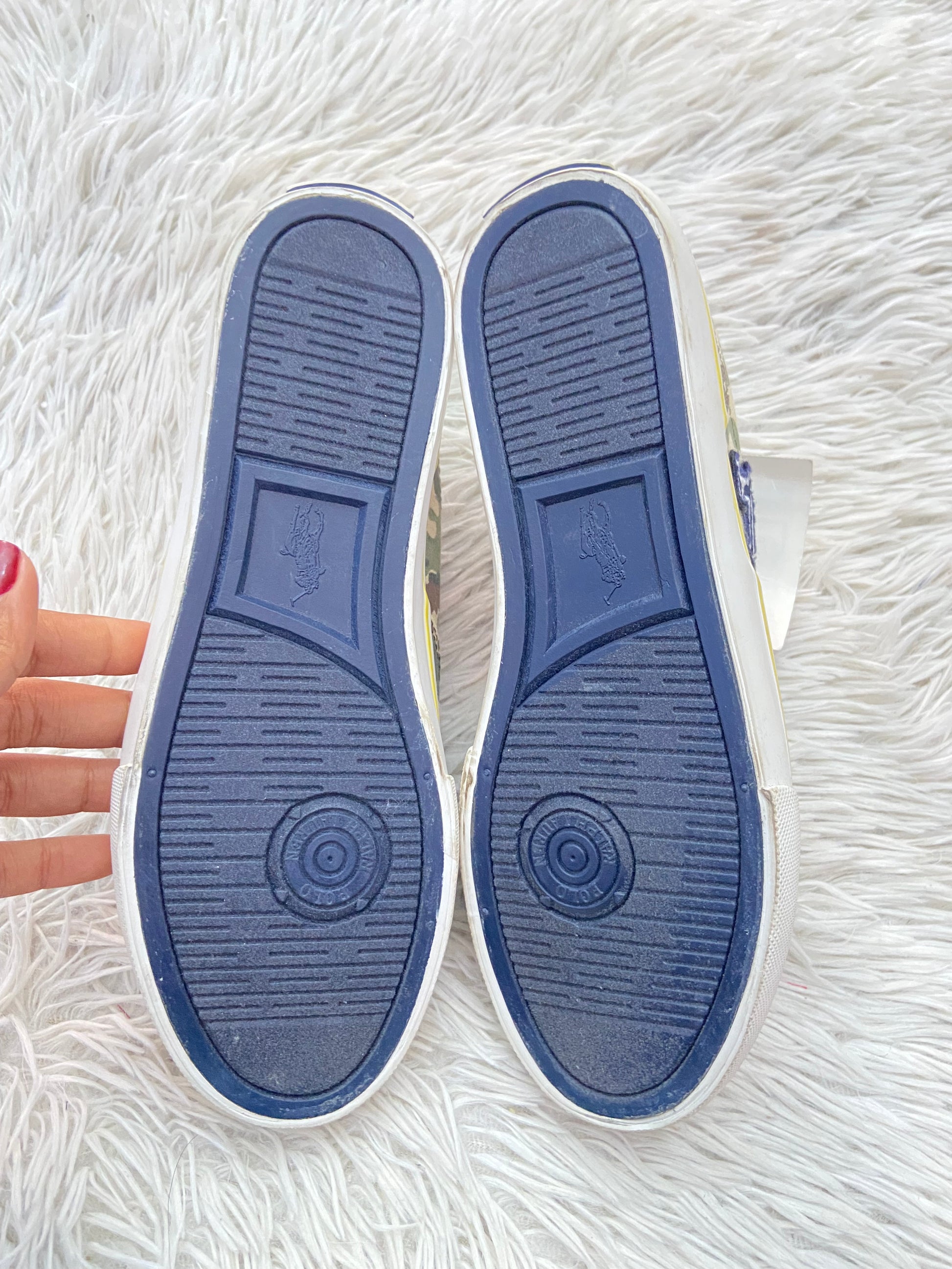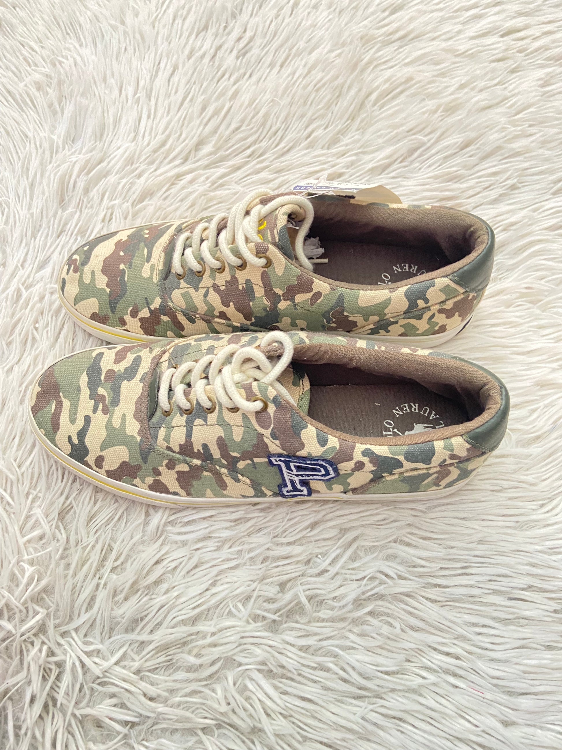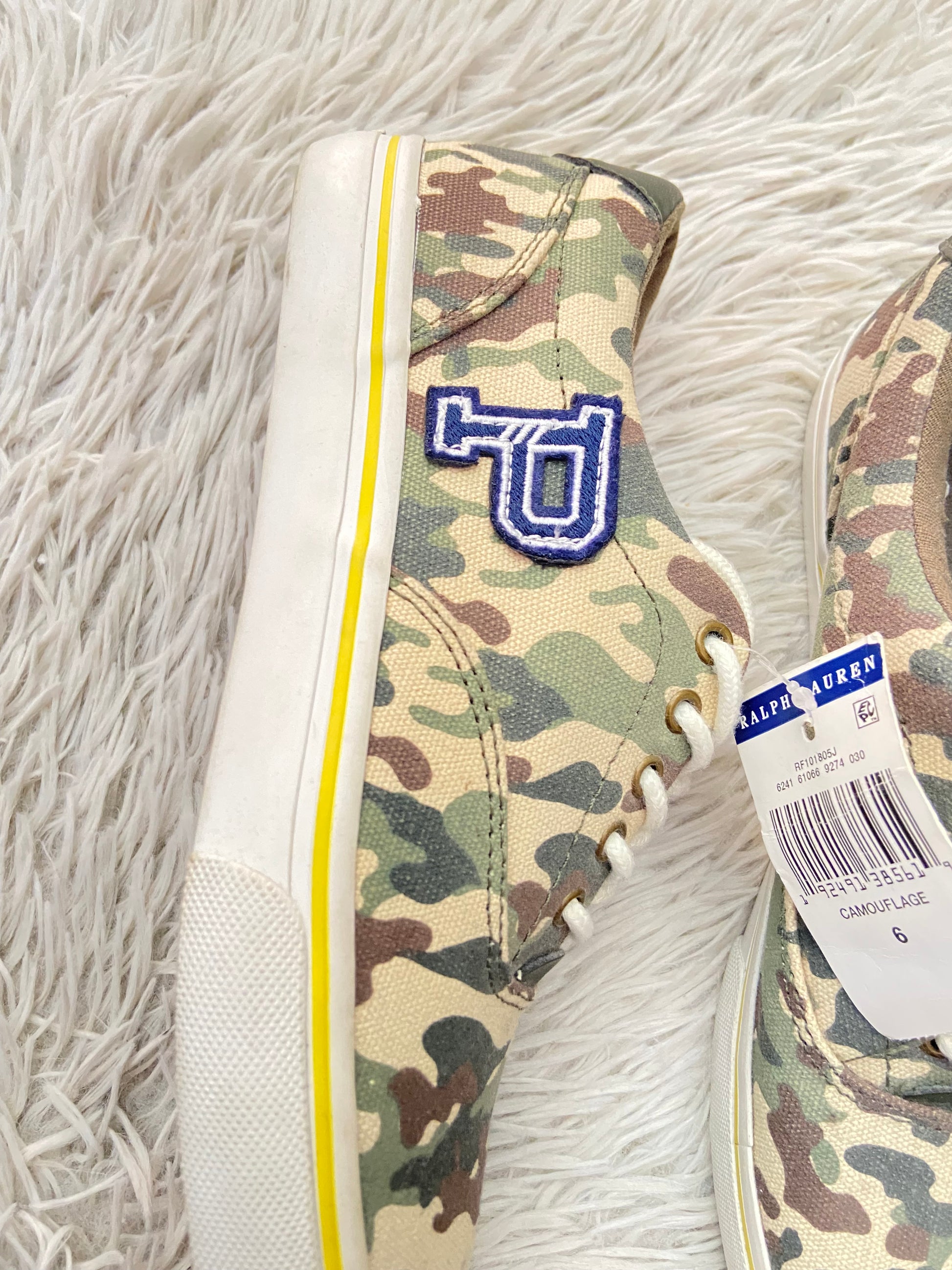 Tenis POLO RALPH LAUREN original verde camuflaje y logotipo P en azul marino.
