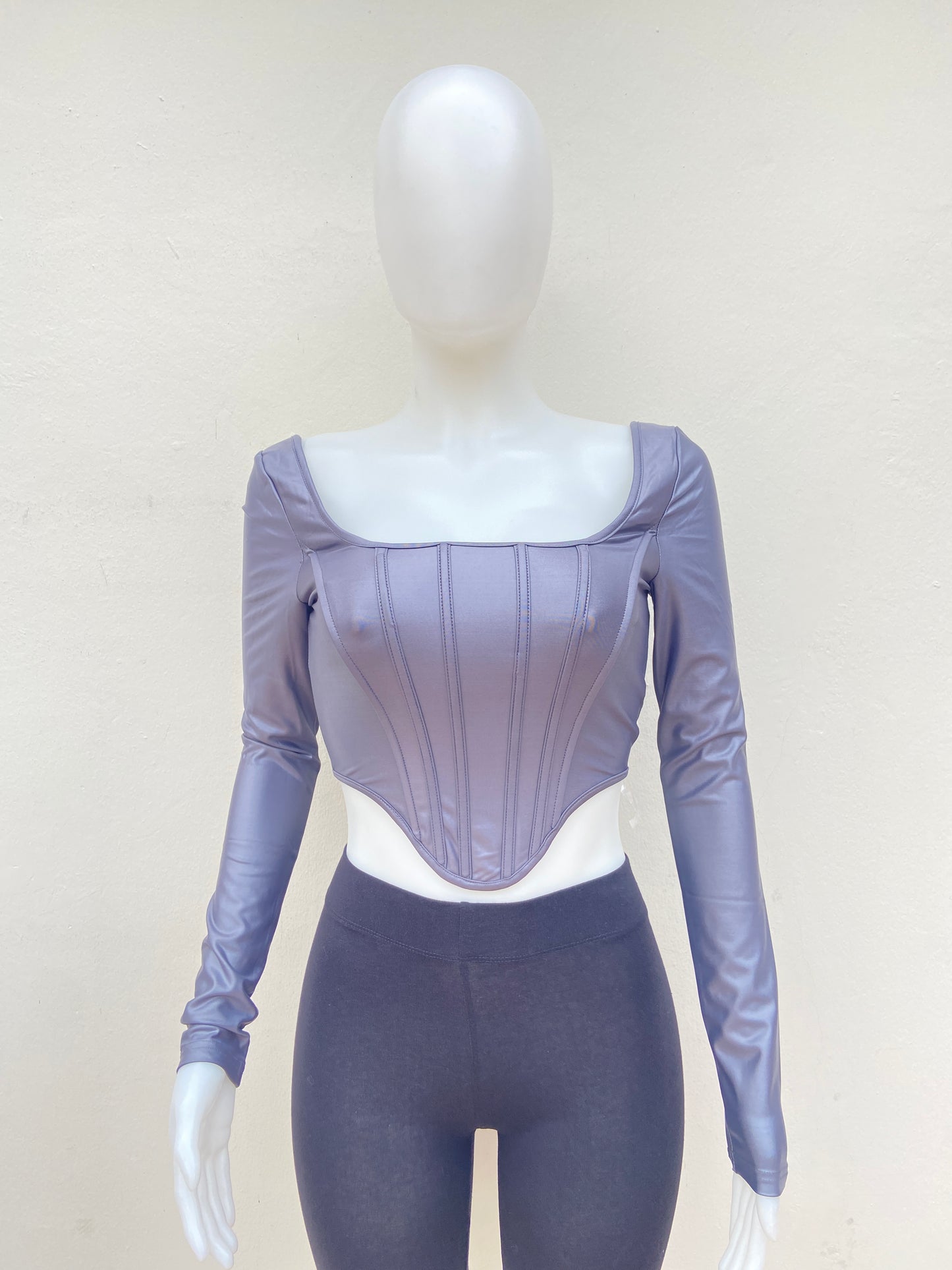 Top Fashion Nova original plateado/gris , estilo corset.