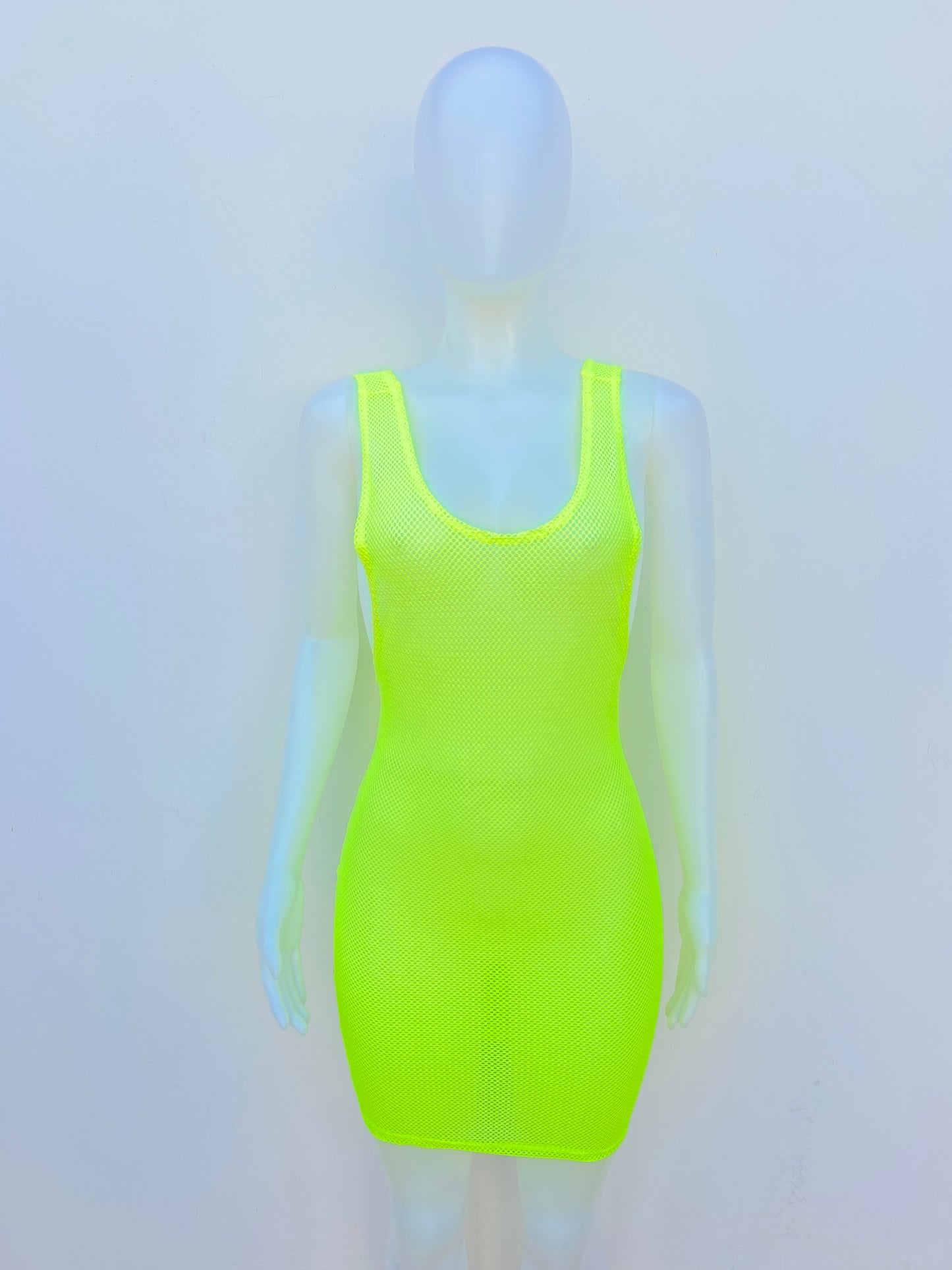Vestido/Cover Up BOZZOLO original verde neon, en malla.
